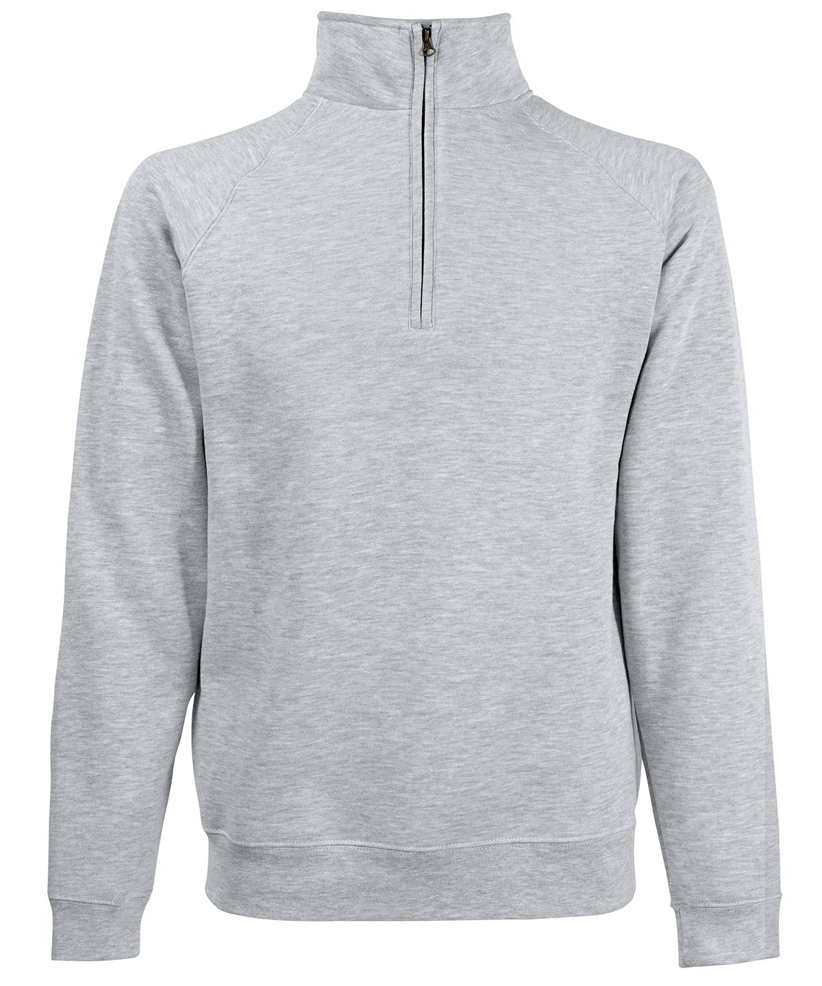 Available in a selection of colours with a covered metal zip for enhanced printability, the classic zip neck sweat is ideal for all kinds of garment decoration. Details include a single Jersey back neck tape for comfort and cotton/LycraÇ?© waist and cuff ribs and a cadet collar for added warmth.