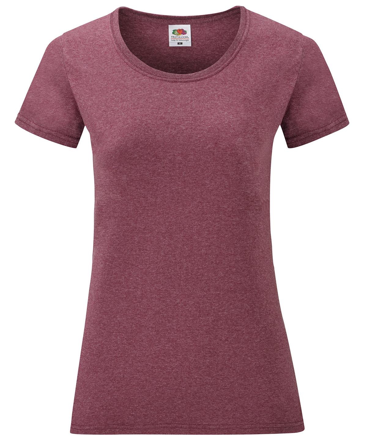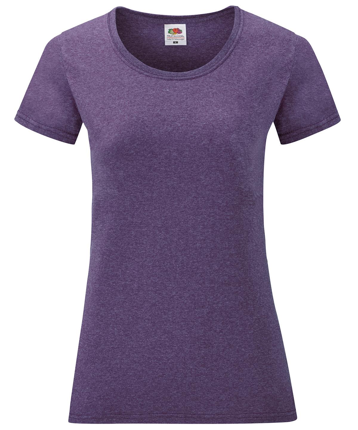 With a fine knit gauge for enhanced printability, the women`s Valueweight T is perfect for many applications including retail, licensing and tourism. The style offers a flattering, feminine fit, with shaped side seams and a cotton/LycraÇ?© ribbed crew neck and is available in a range of attractive colours, including eye-catching Marls Heather Purple and Heather Burgundy.