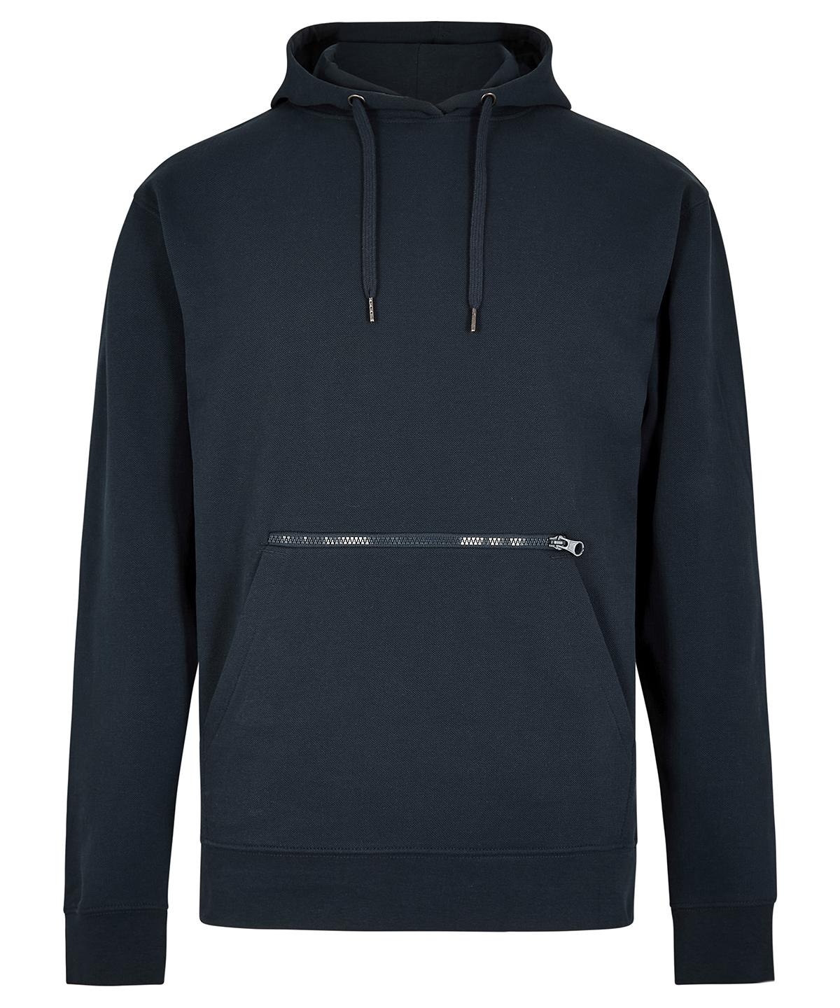 Add something new to your hoodie collection! Kustom Kit have combined the superior abrasion properties of piqué with the warmth and comfort of brushed-back fleece to create the ultimate hard-working fabric. Combining trend-led detailing with superior quality and performance, this piqué hoodie is designed to appeal to multiple markets. Key features include an innovative zipped double pocket, metal eyelets and cord end details, plus a raised hood which allows for a larger back-panel print area.