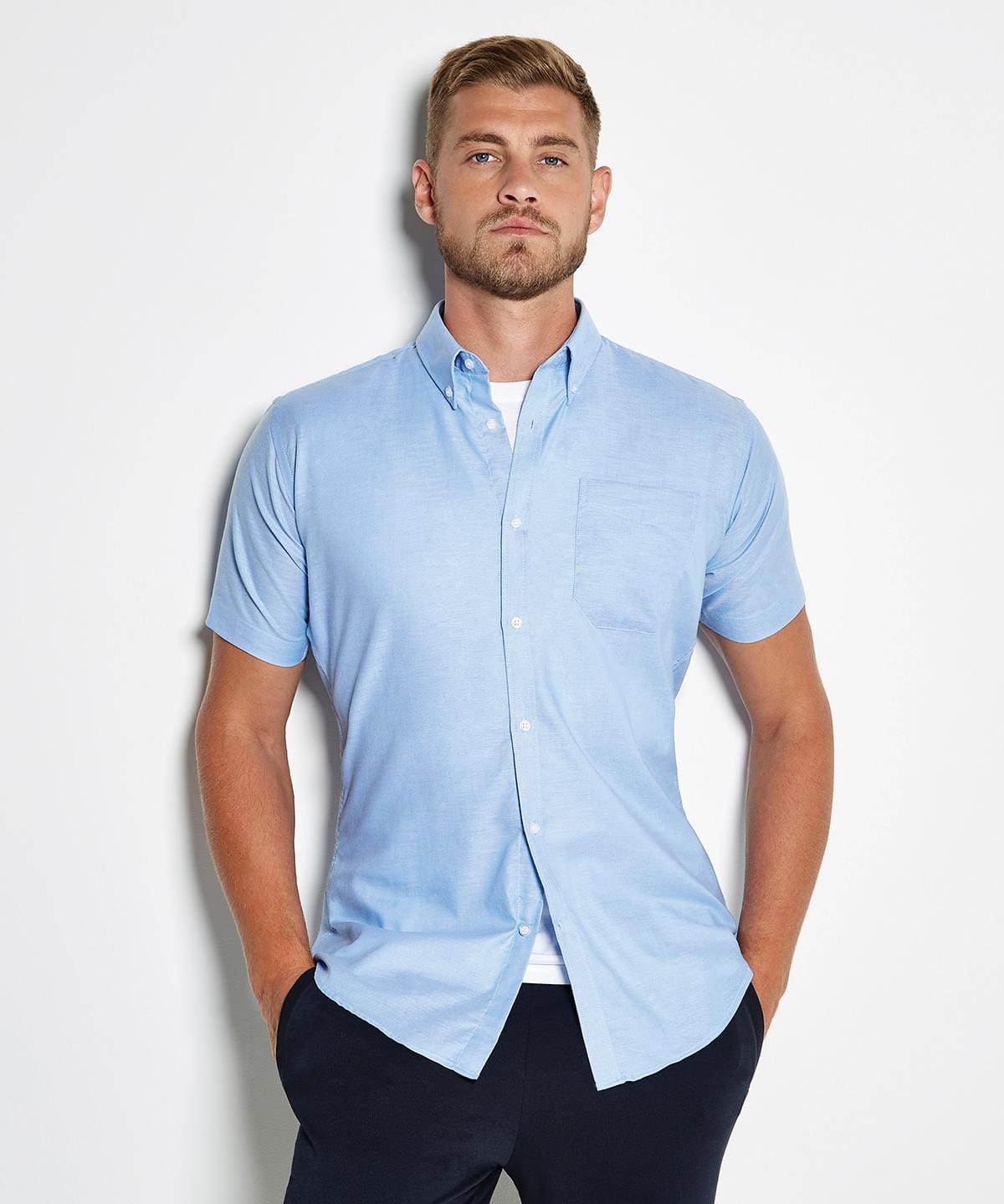 This modern slim fitting short sleeve oxford shirt is as durable as it stylish. Cotton rich and cut from a soft oxford weave, it`s a comfortable and fashionable choice.