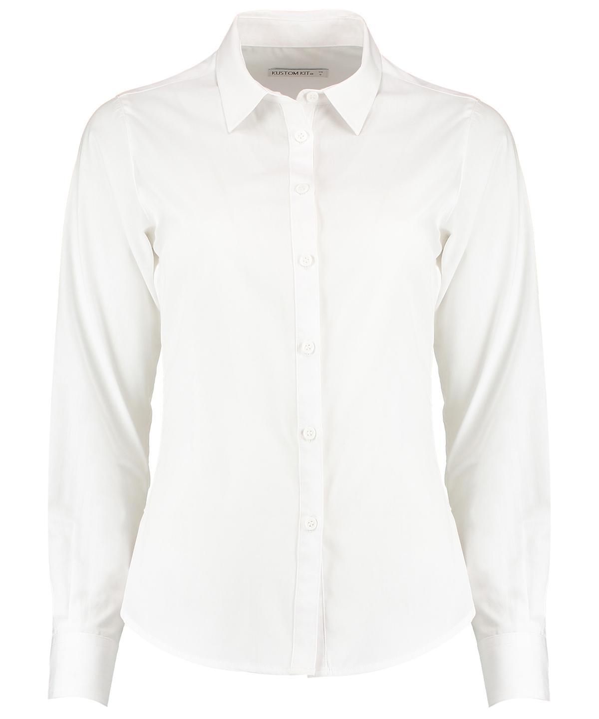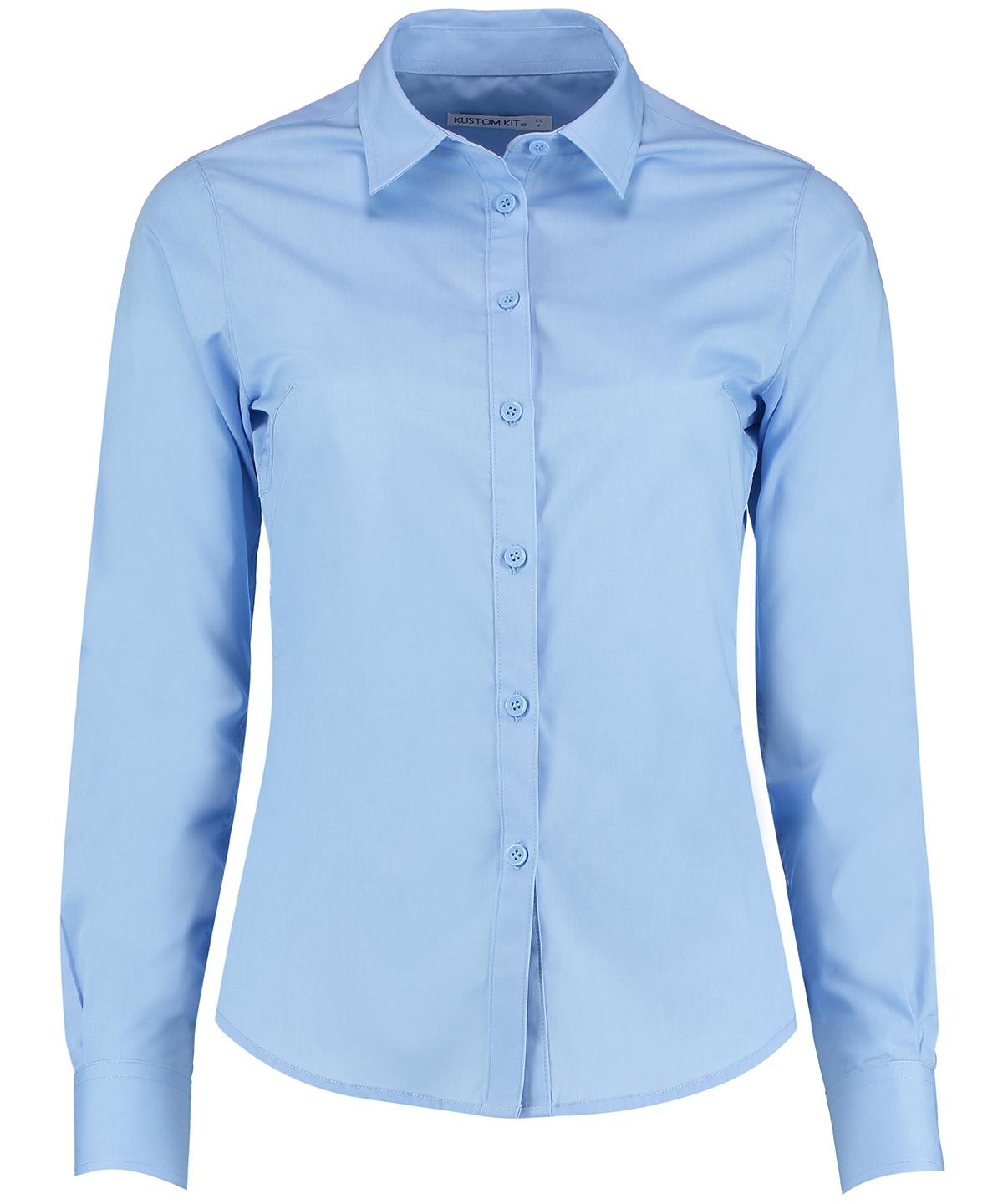 Women`s long sleeve tailored poplin shirt. Versatile contemporary styled business shirt with soft collar and adjustable cuffs.
