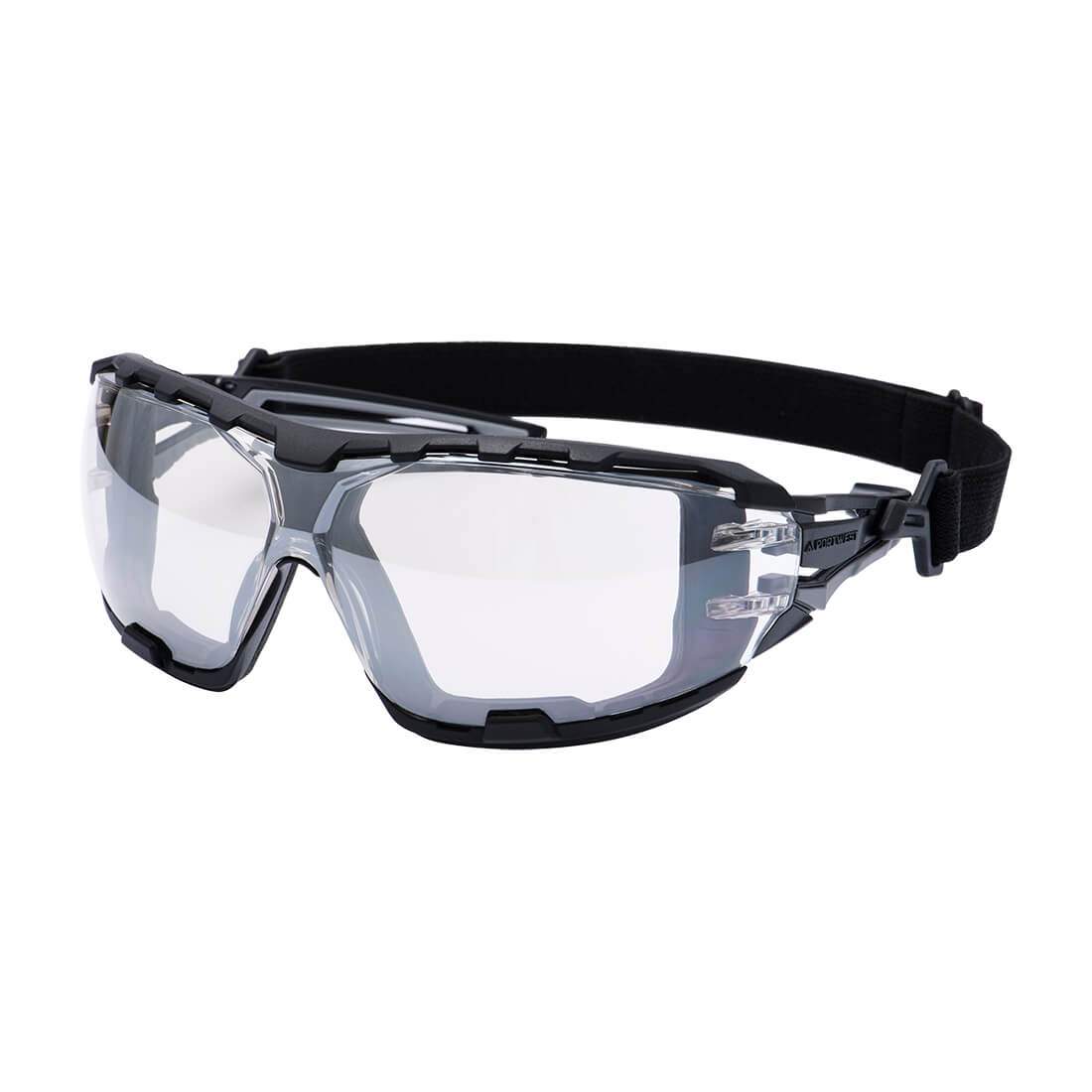 The Anthracite Wraparound Pro Safety Glasses with gasket and rear head strap offer enhanced eye protection with a secure, customizable fit. Ideal for high-risk environments, they combine comfort and safety for extended wear.