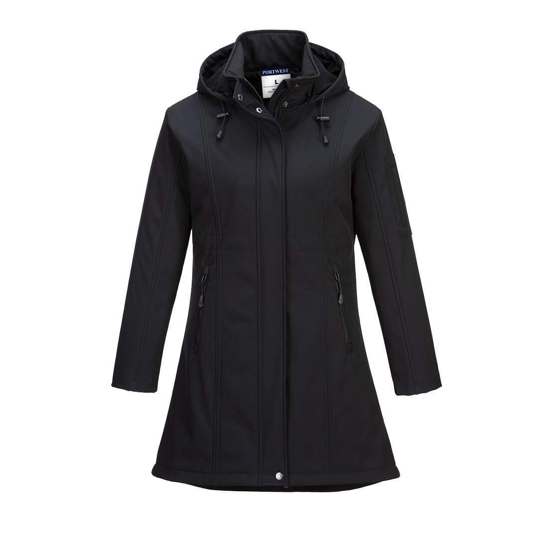 The Carla Hooded Softshell Jacket is perfect for women who need to look smart but still desire protection from adverse weather conditions. Made from a technical softshell fabric, this tailored piece is water resistant and includes a storm flap, adjustable hood and zipped pockets.