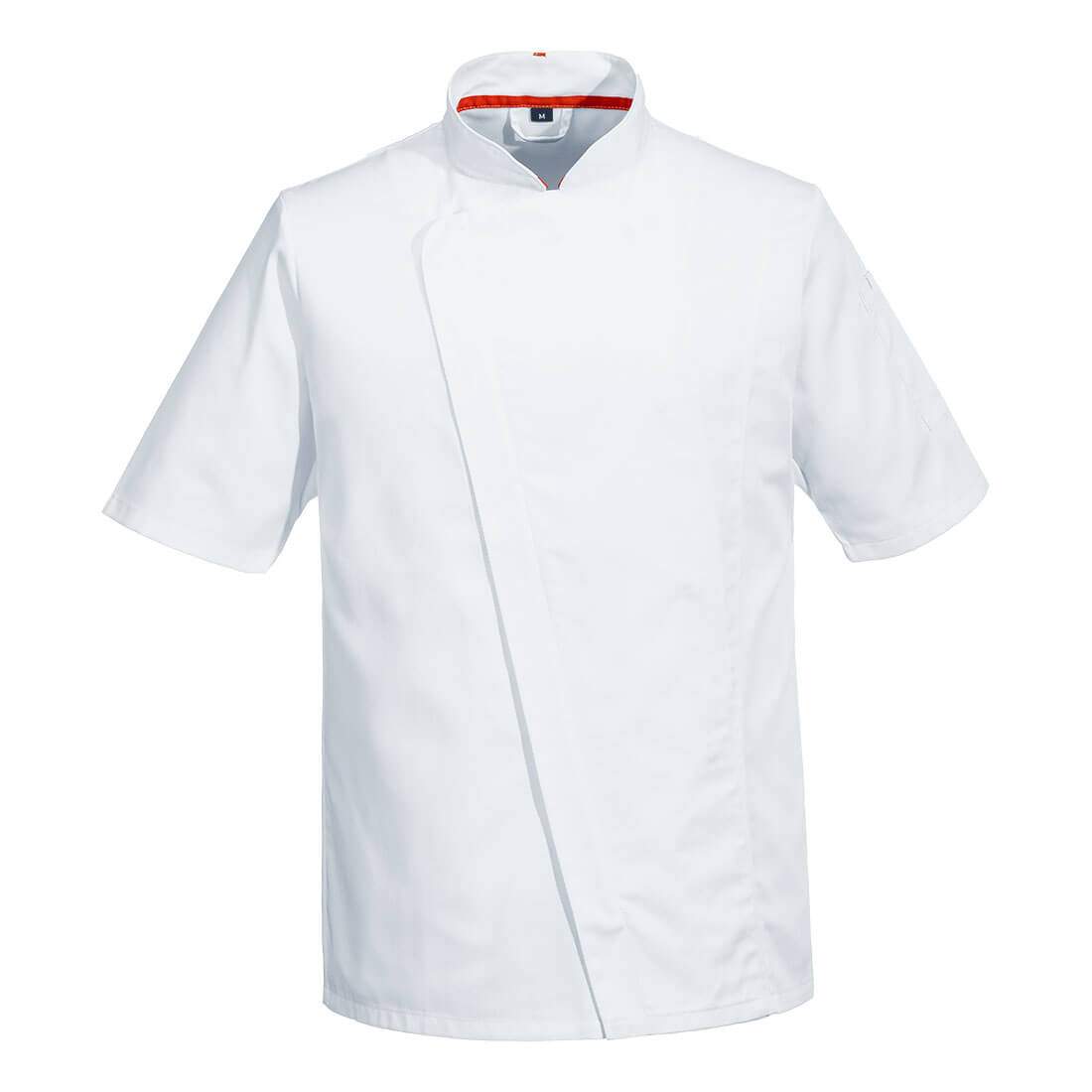This chefs jacket uses a lightweight fabric and offers a modern, slimmer silhouette with an ergonomic fit. Features of this jacket include double breasted zip front fastening, zipped side pocket and large MeshAir Pro panels at the back and underarms for outstanding breathability.