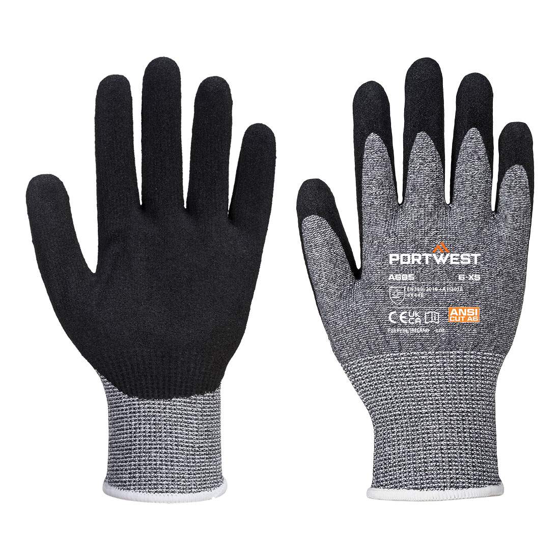 Level E cut resistant glove with nitrile foam coating for excellent grip in wet and dry conditions. Palm dipped to increase dexterity and ventilation. Seamless 13 gauge liner. ANSI cut level A6.