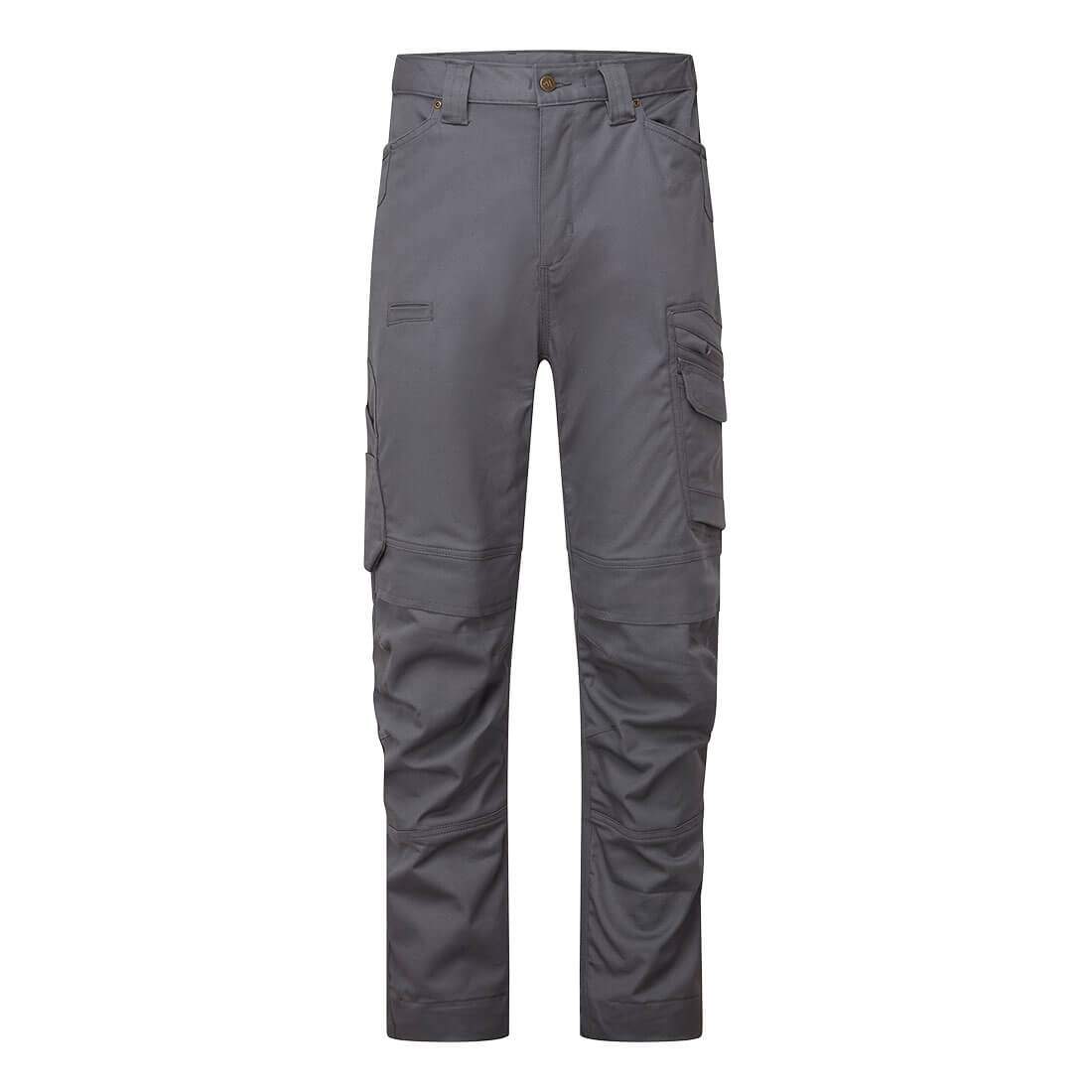 Slim fitting cargo trouser made from durable cotton stretch fabric that delivers long lasting comfort and freedom of movement. Packed full of features to offer enhanced performance including pre-bent knees, a high rise back waistband and an adjustable leg length for added convenience. Multi-functional thigh pockets are ideal for secure storage of phones, pens and tools.