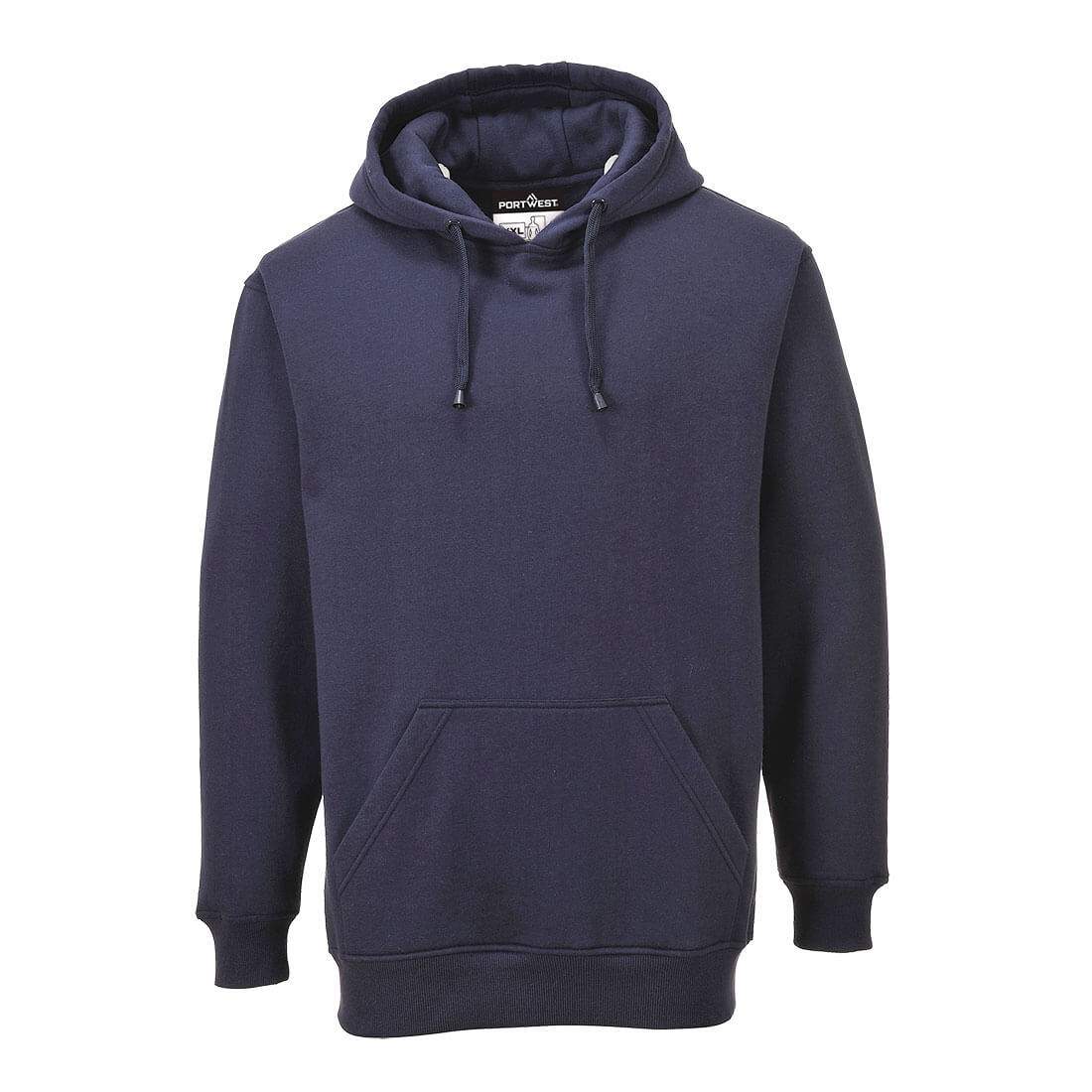 This stylish and practical hooded sweatshirt has a soft brushed inner lining for extra comfort. The polyester content ensures excellent durability. Design features include a large kangaroo pocket and self lined hood.