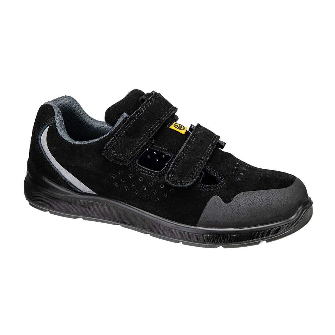 This sandal offers a steel toecap and protective midsole plate. Suitable for use in ESD environments. Outstanding breathability and ventilation offering maximum comfort to the wearer. Features a double fastening strap for a more comfortable fit.