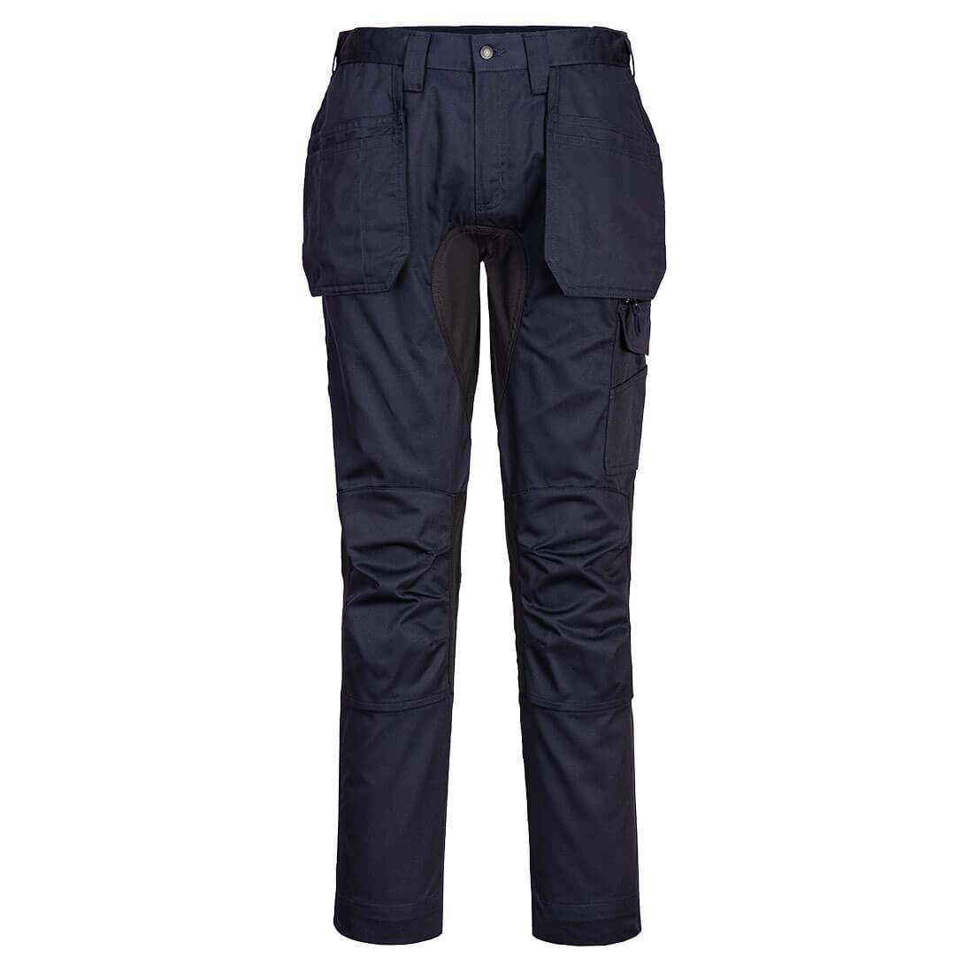 A durable cotton polyester blend fabric allows for both high performance maximum range working, as well as comfort. Stretch panelling allows for ease of movement. Clever features include multi-functional holster pockets, top loading kneepad pockets and an easy access multi-way thigh pocket for secure storage of phone, keys and tools.