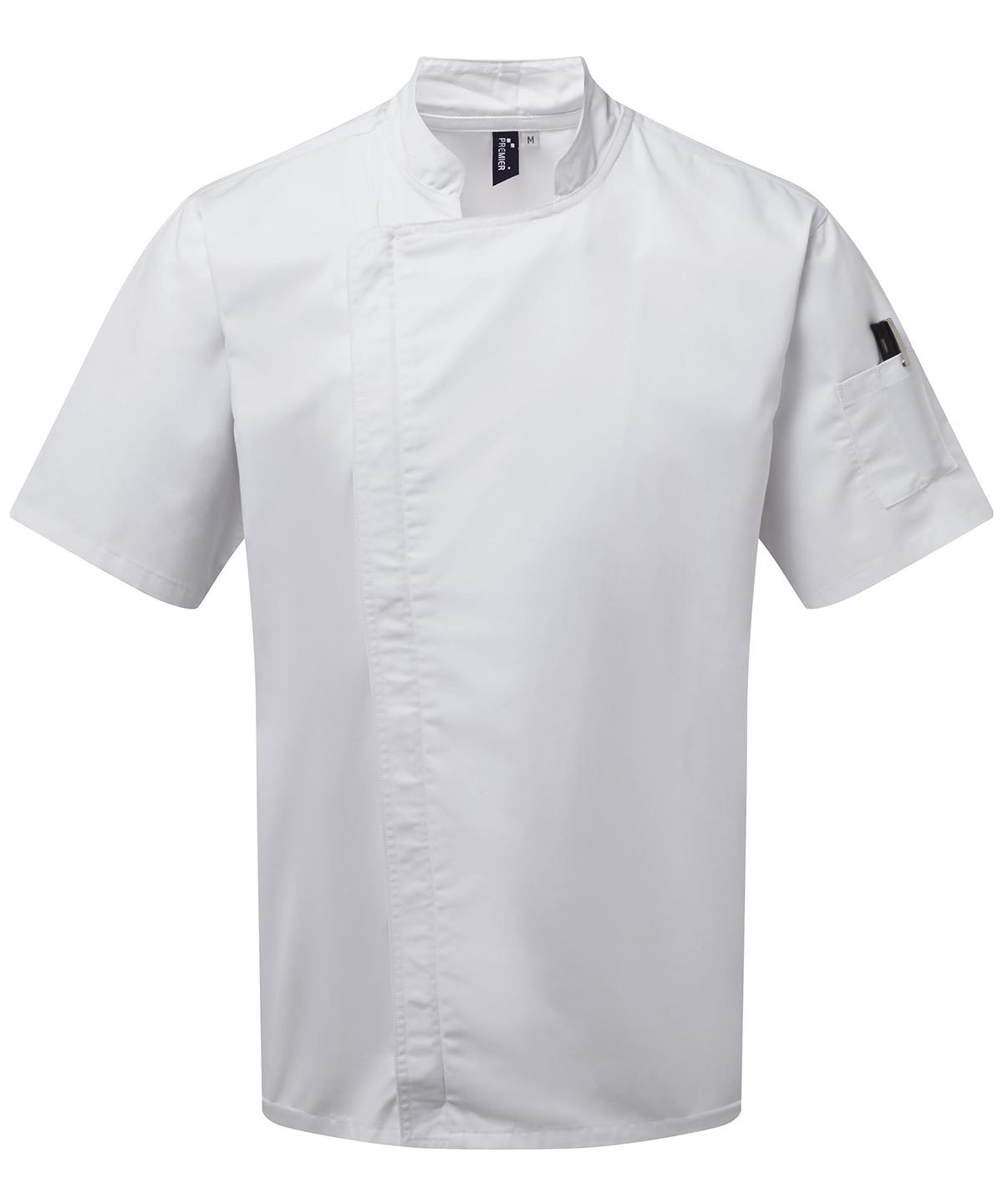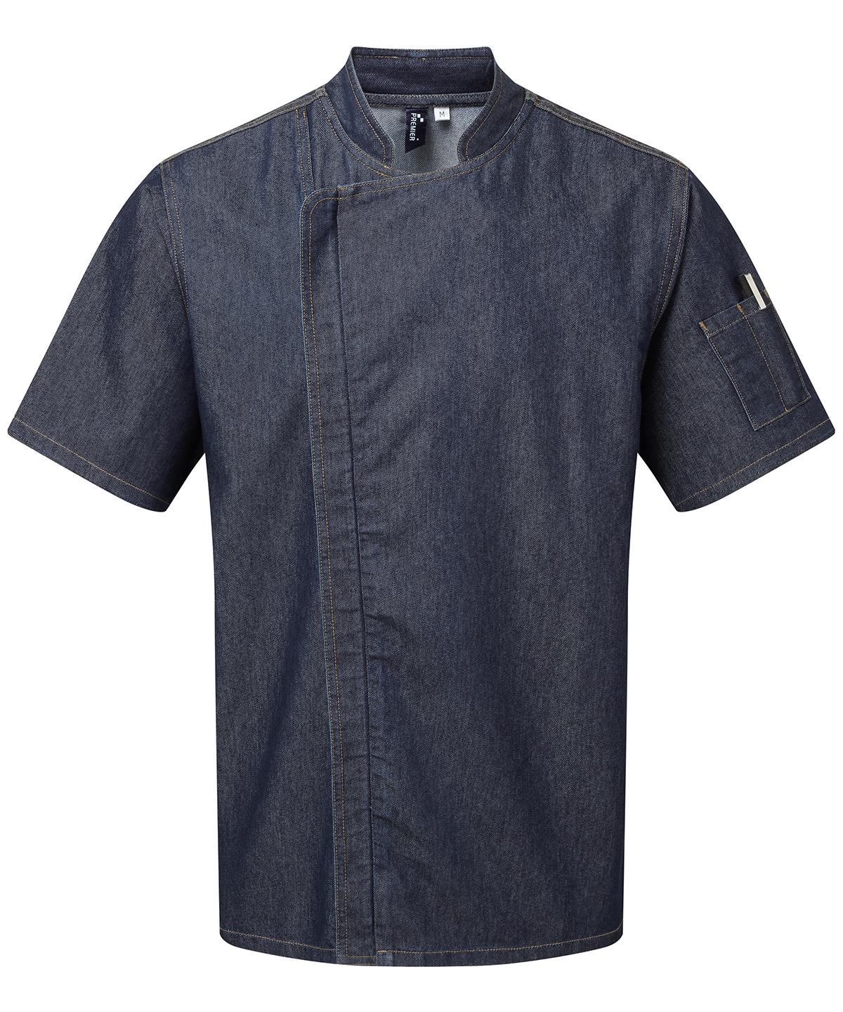 An Easy Wearing Pull On Chefs Jacket With A Concealed Zip Through Fastening The Two Denim Styles Have Reverse Coloured Panels Under The Arm And Down The Sides With The White Version Benefits From An Under Arm Breathable Mesh Panel Styled With A Mandarin Collar And Side Vents For A Typical Style Seen In Many Kitchen Environments