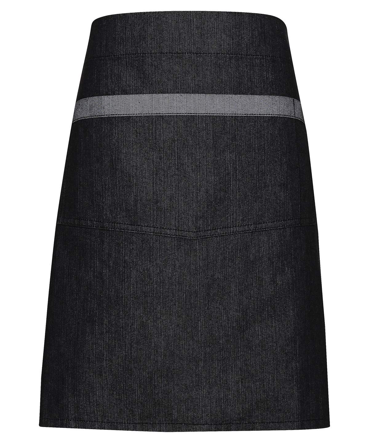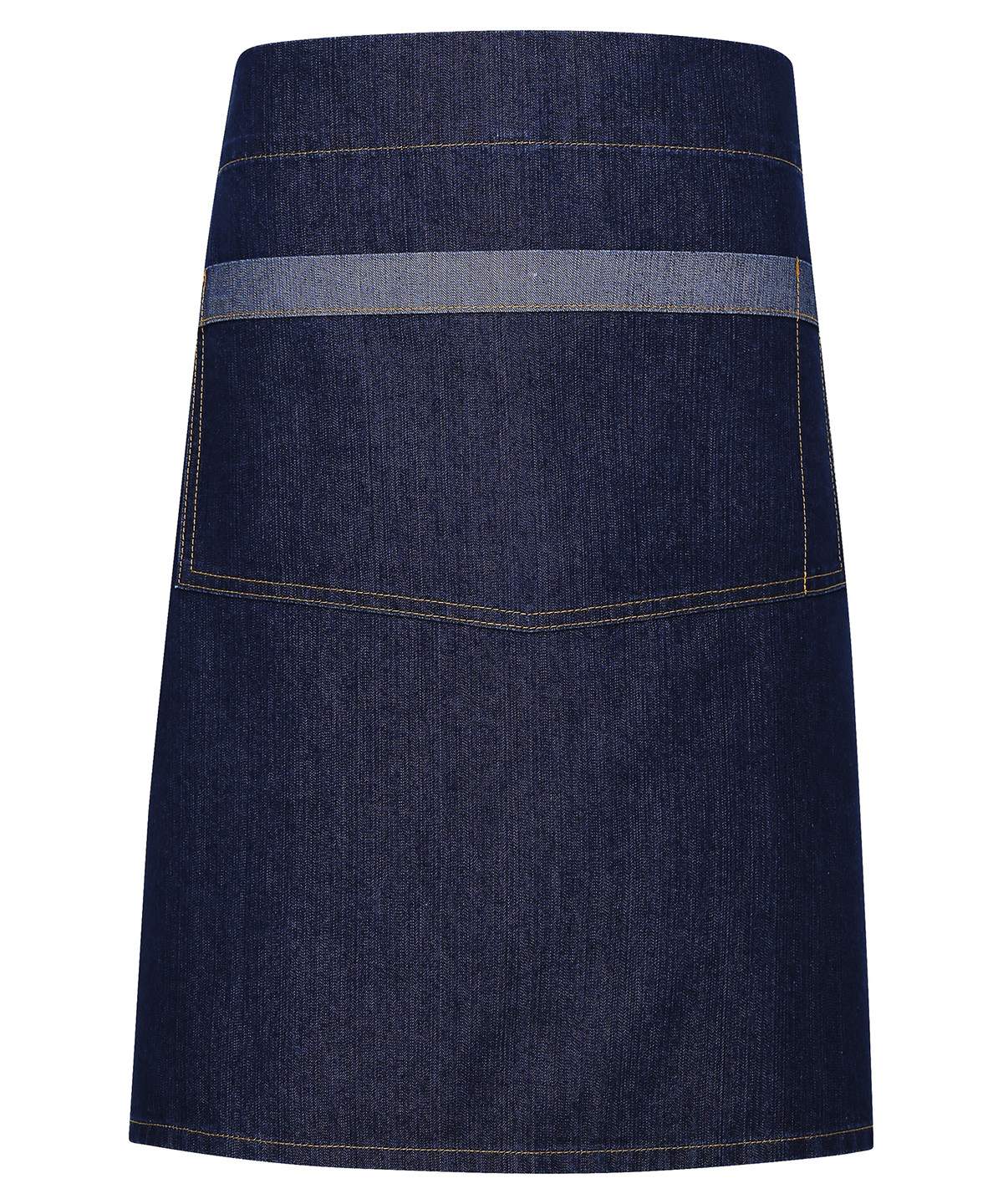 A Quirky Addition To The Denim Range This Mid Length Apron Gives An Industrial Chic Feel To Service With Large Metal Eyelets Securing The Waist Ties In Place The Shade On The Underside Forms The Contrast Trim Detail On The Pocket And Ties For A Great Reversible Effect