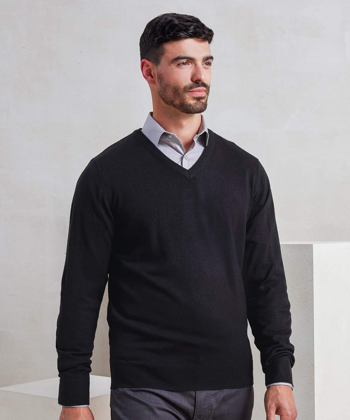 A Simple Easy Wearing Sweater That Adds Layers Of Style To Your Outfit Designed With Ribbed Knit Set In Sleeves Hem Line And V Neck For A Contemporary Modern Look