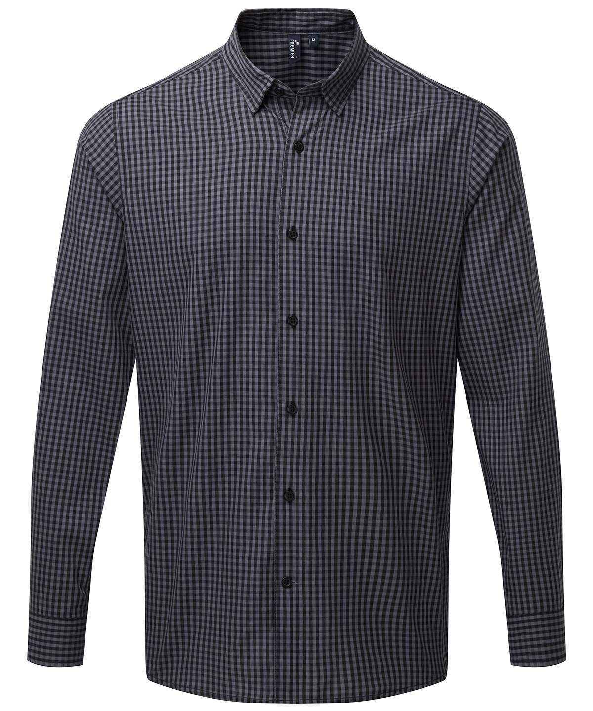 An Attractive Long Sleeve Gingham Patterned Shirt In Strong Contrast Colours Featuring A Single Buttoned Cuff And Sleeve Guard Styled With A Narrow Soft Collar With Button Down Options On The Underside An Easycare And Durable Men S Chequered Shirt That Gives A Charming Vintage Chic Approach To Front Of House Service