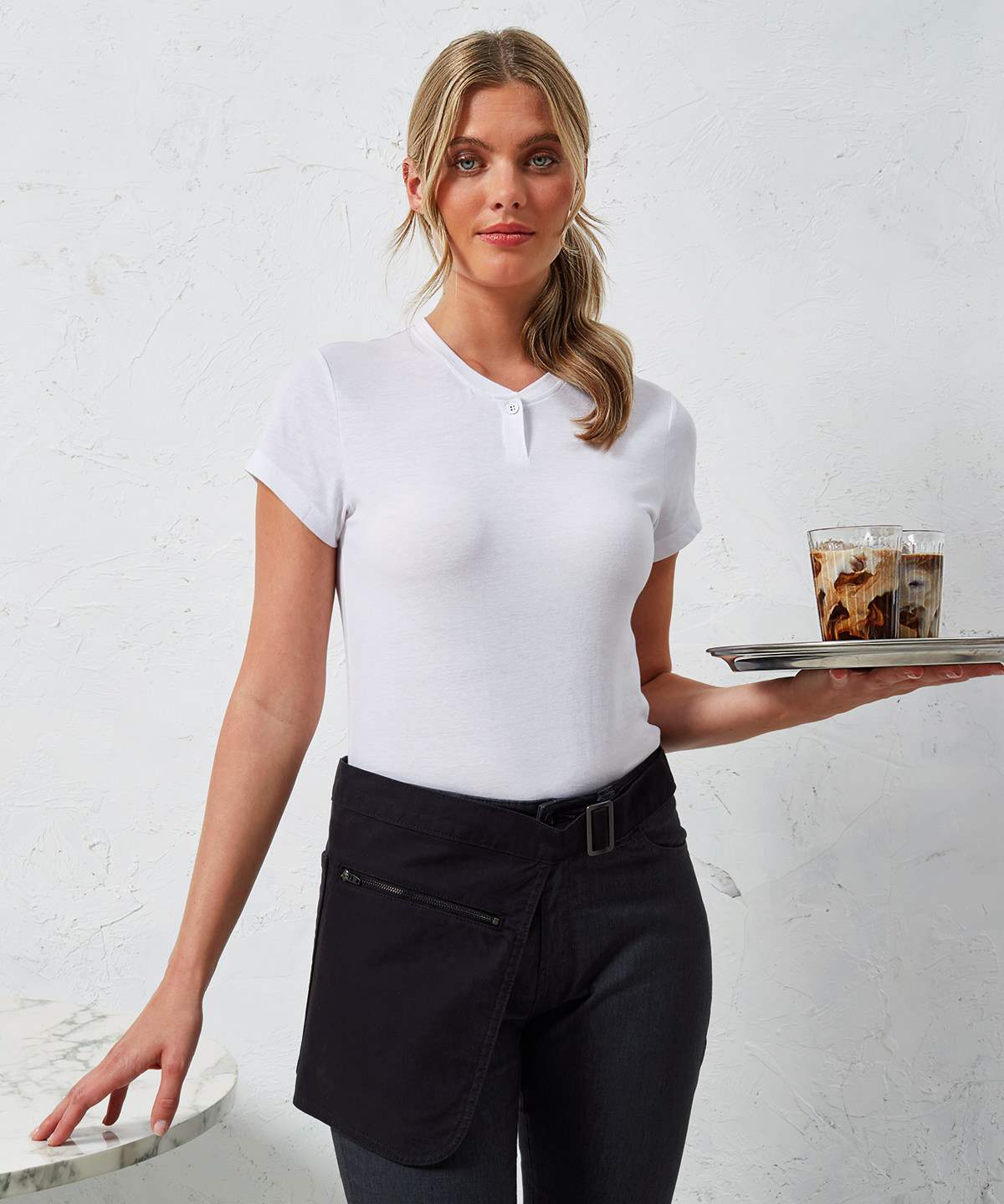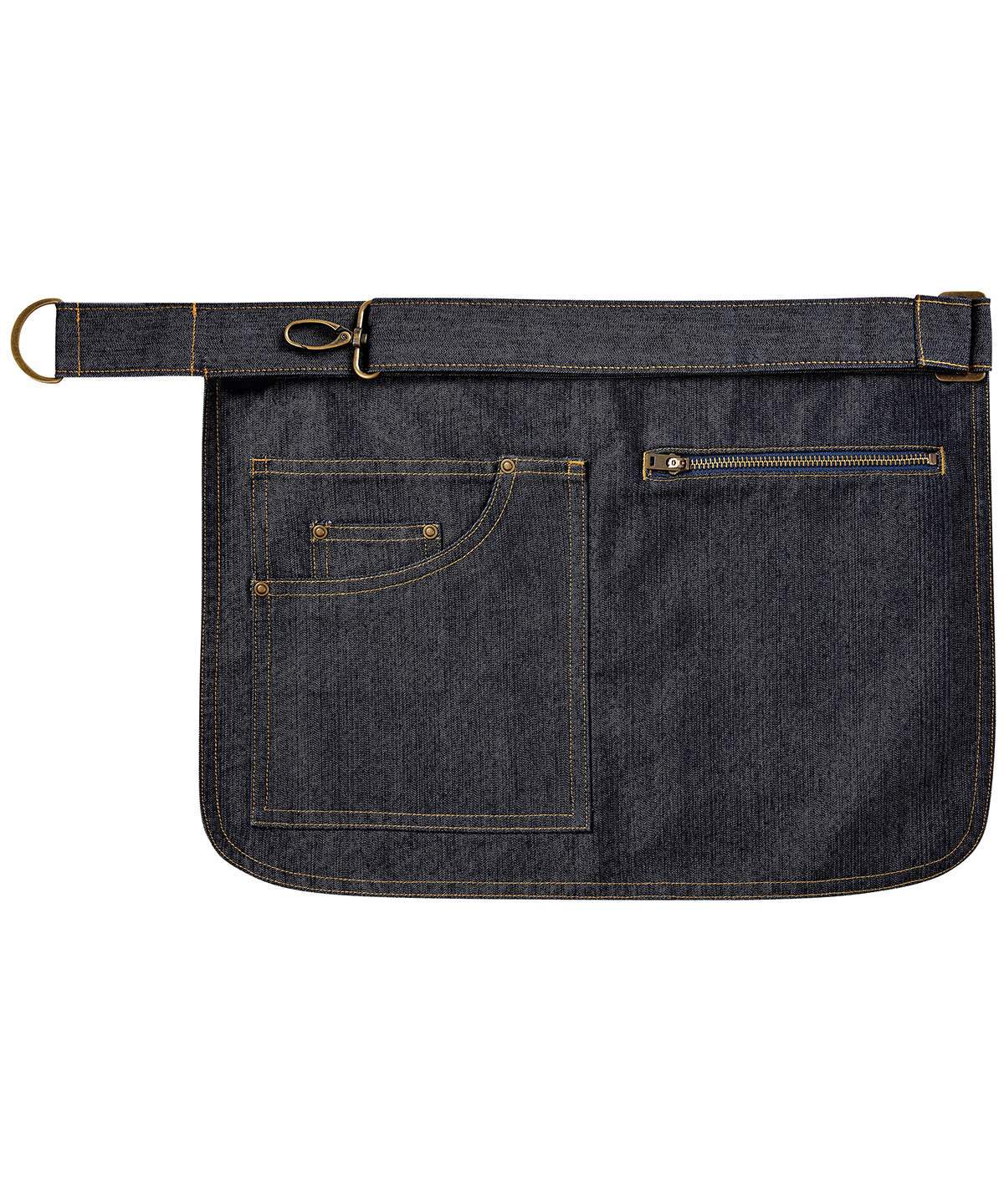 A Cool And Quirky Addition To The Artisan Collection This Apron Is Designed To Be Worn On The Hip For Handy Pocket Access Features A Tablet Friendly Jeans Style Pocket And Ykk Zip Pocket Which Detaches From The Main Body Of The Apron To Allow Print And Embroidery Applications To The Front An Adjustable Self Fabric Waistband Reaches Around The Waist And Fastens Together With An Antique Brass Carabiner And D Ring