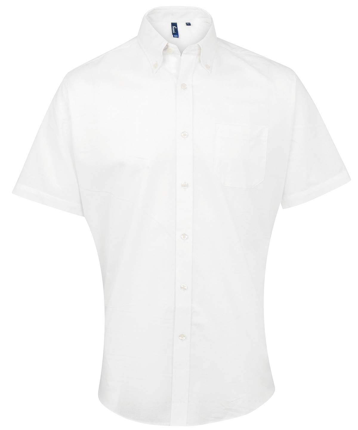Premier S Short Sleeved Men S Signature Oxford Comes In A Cotton Rich Oxford Weave Fabric It S Semi Fitted Styling And Side Back Pleats Give A Tailored Look Presenting A Professional Front To Your Business Classic Features Include Buttoned Down Collar And Left Chest Pocket With The Overall Classic Oxford Weave Appearance