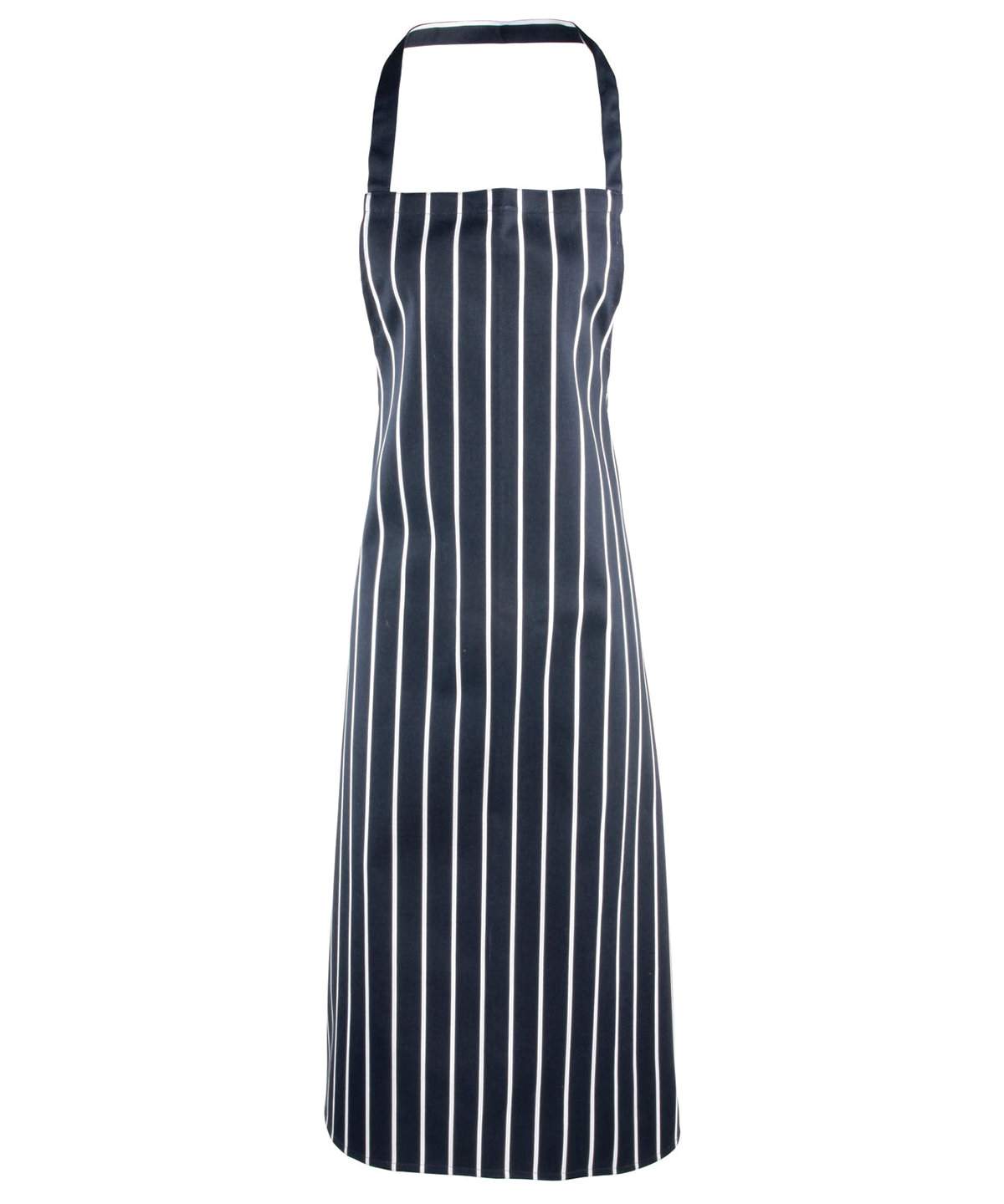 A Favoured Style With The More Traditional Occupations In The Industry This Butcher S Bib Apron Offers Great Protection For The Wearer And Is Embellished With Vertical Stripes The Striped Pattern Continues Across The Neckband And Ties