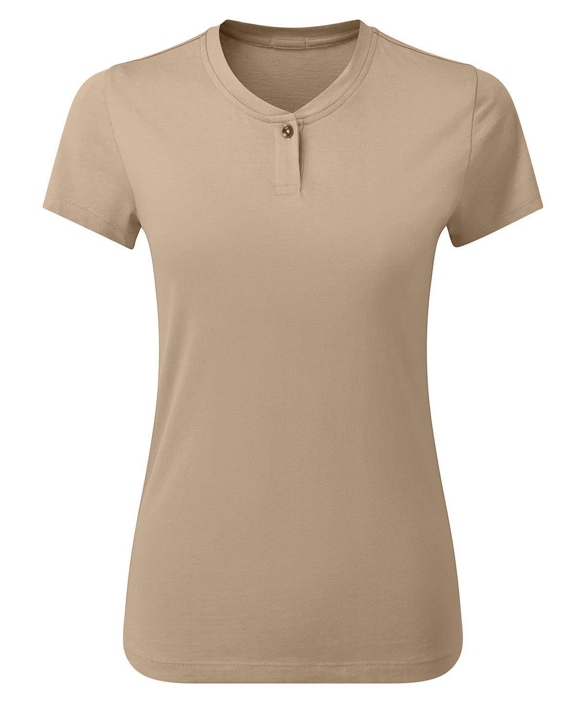 A Popular Style For Service Staff This Women S Short Sleeve T Shirt Is Made From A Combination Of Certified Recycled Polyester And Cotton Designed With A Single Button On The Placket And A Narrow Banded Collar This Style Has A Soft Feel To The Fabric