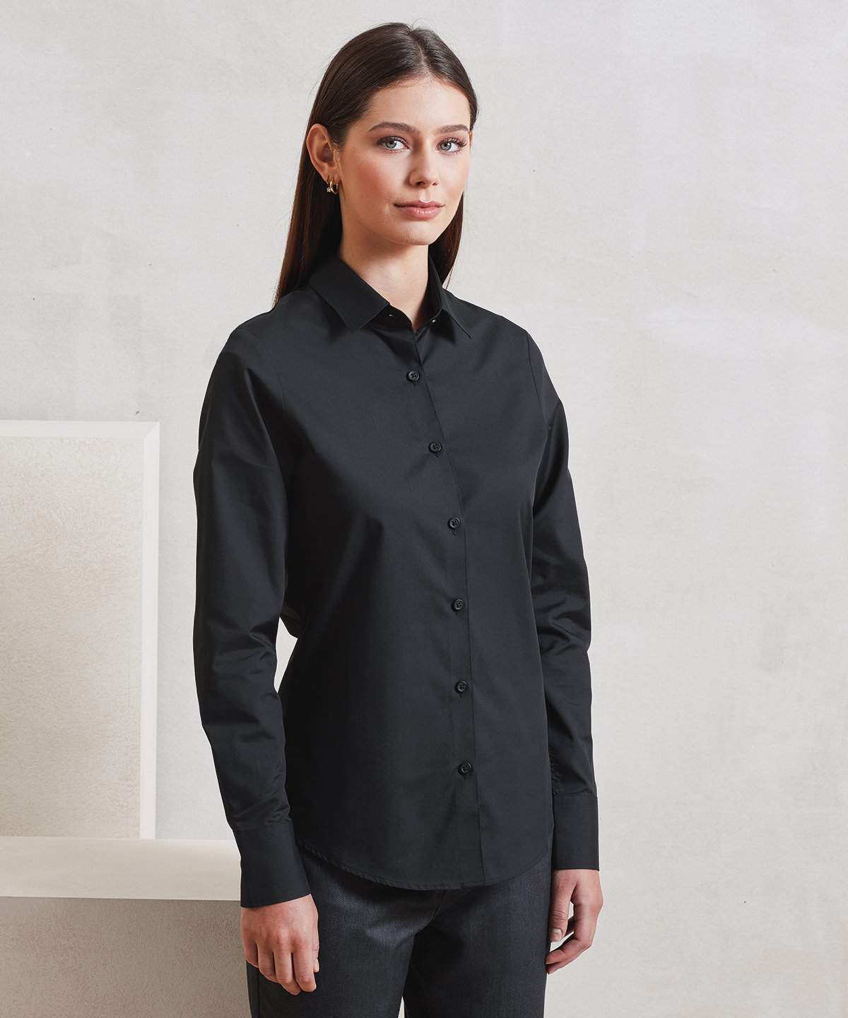 Created Using Materials With Less Impact This Best Selling Women S Poplin Shirt Is Now Available In A Certified Recycled Polyester Cotton Blend It Boasts The Same Great Easycare Properties As The Classic Poplin But Is Constructed In A Heavier Weight And Has A More Fitted Shape Soft Collar Styling Back Darts And A Curved Hemline Enhance The Feminine Shape While A Double Buttoned Cuff And A Single Button Sleeve Guard Facilitate A Roll Back Option A Great Everyday Easycare Women S Work Shirt