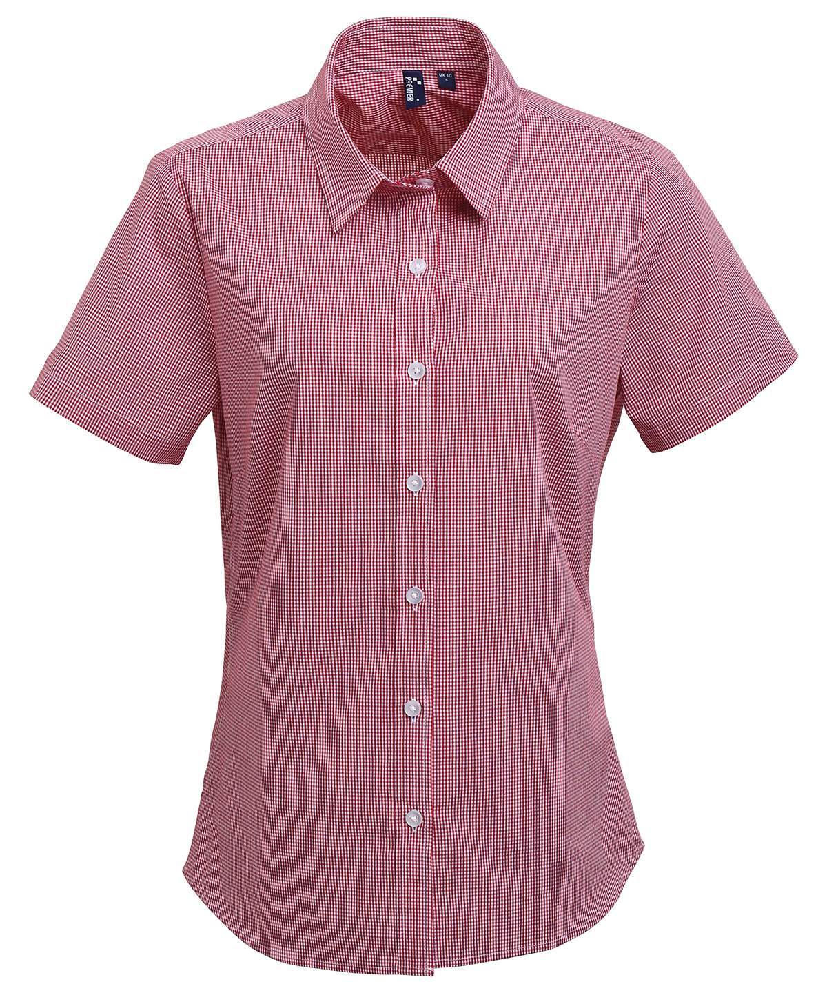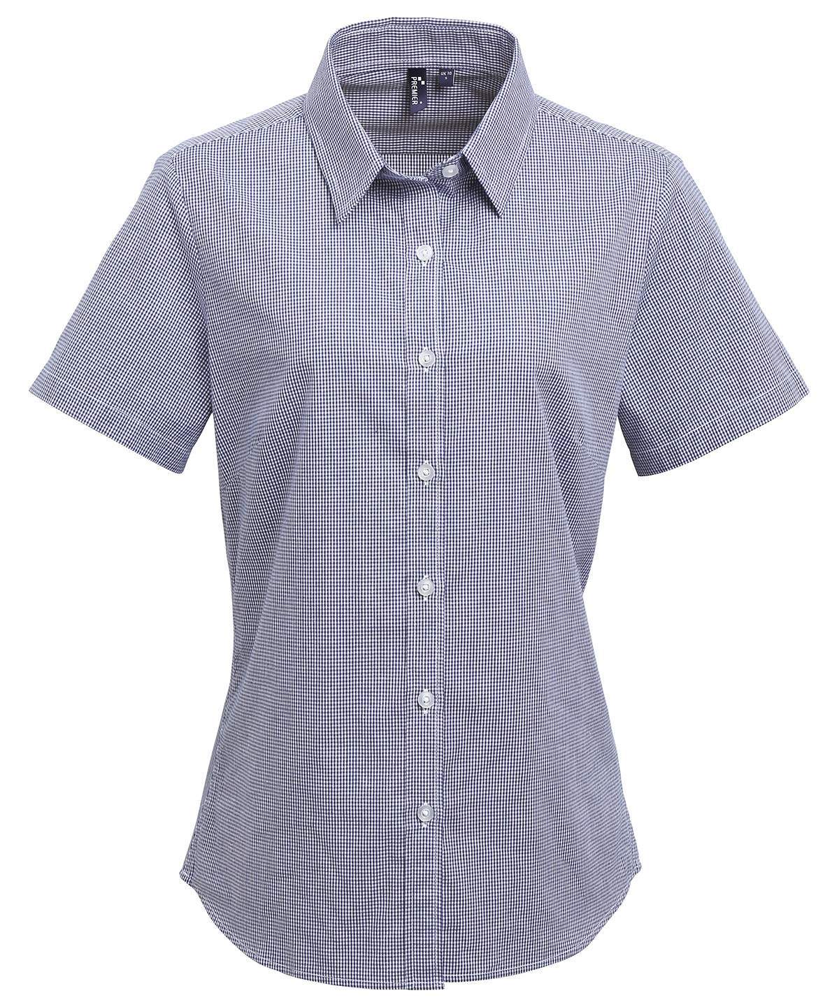 A Welcome Addition To The Existing Range Of Ladies Short Sleeve Blouses From Premier This Style Reflects The Latest Corporate Styles Worn On The Office Floor The Gingham Print Along With Soft Collar Styling Offers A More Casual Approach To Workwear But The Buttoned Collar Ensures That This Remains A Smart Choice For Business Professionals Made With 100 Cotton For A Soft And Comfortable Blouse That Is Available In Four Popular Colourways