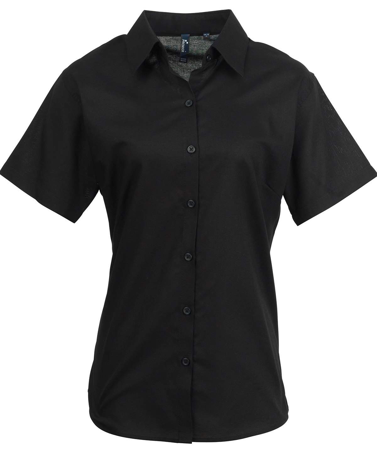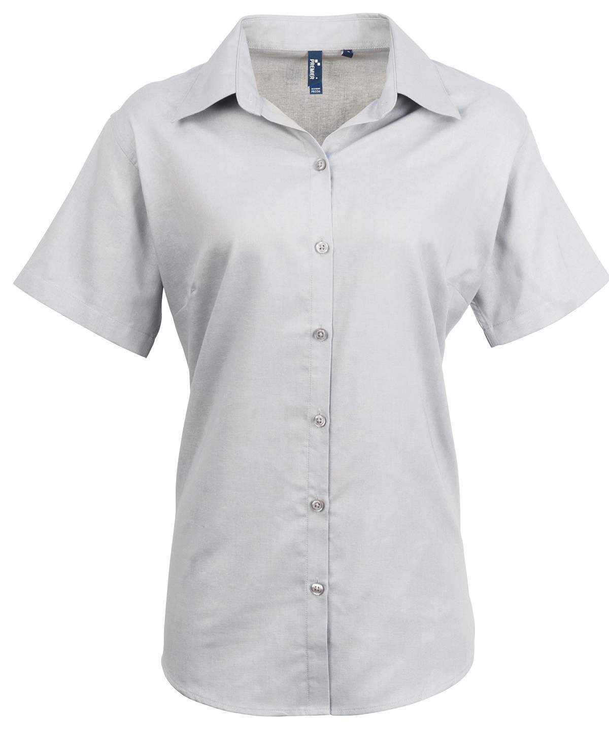 This Short Sleeve Ladies Oxford Blouse Is An Essential Wardrobe Item During The Warmer Months Bust And Back Darts Make For A Flattering Fit And The Soft Collar Styling And Rounded Bottom Hem Ensure A Feminine Workwear Blouse For Women