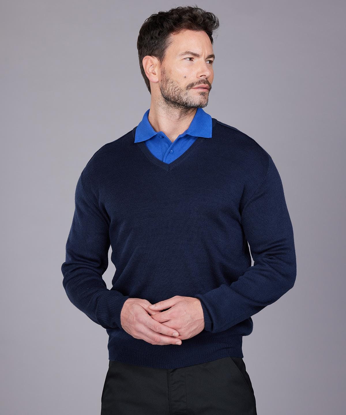The Pro sweater is a staple workwear item. Designed with a v-neck and set-in-sleeve and finished with knitted saddle shoulders for extra durability, it`s smart style makes it extremely versatile for all workwear needs.