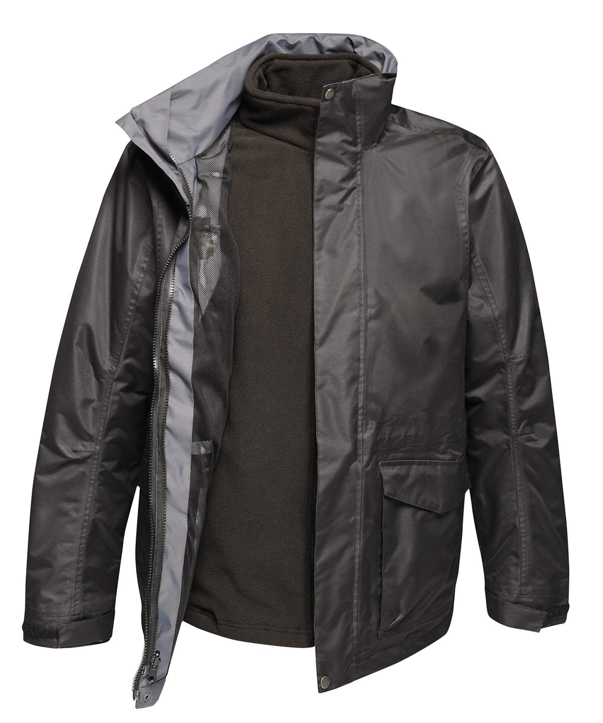 Concealed hood with adjusters. Studded storm flap. Adjustable cuffs. 2 lower pockets with zipped hand warmers and 2 lower cargo pockets. Zipped chest pocket. Adjustable shock cord waist and hem. Concealed zip entrance in lining for embroidery. 2 zipped lower pockets. Fleece cuffs. Adjustable shock cord hem.