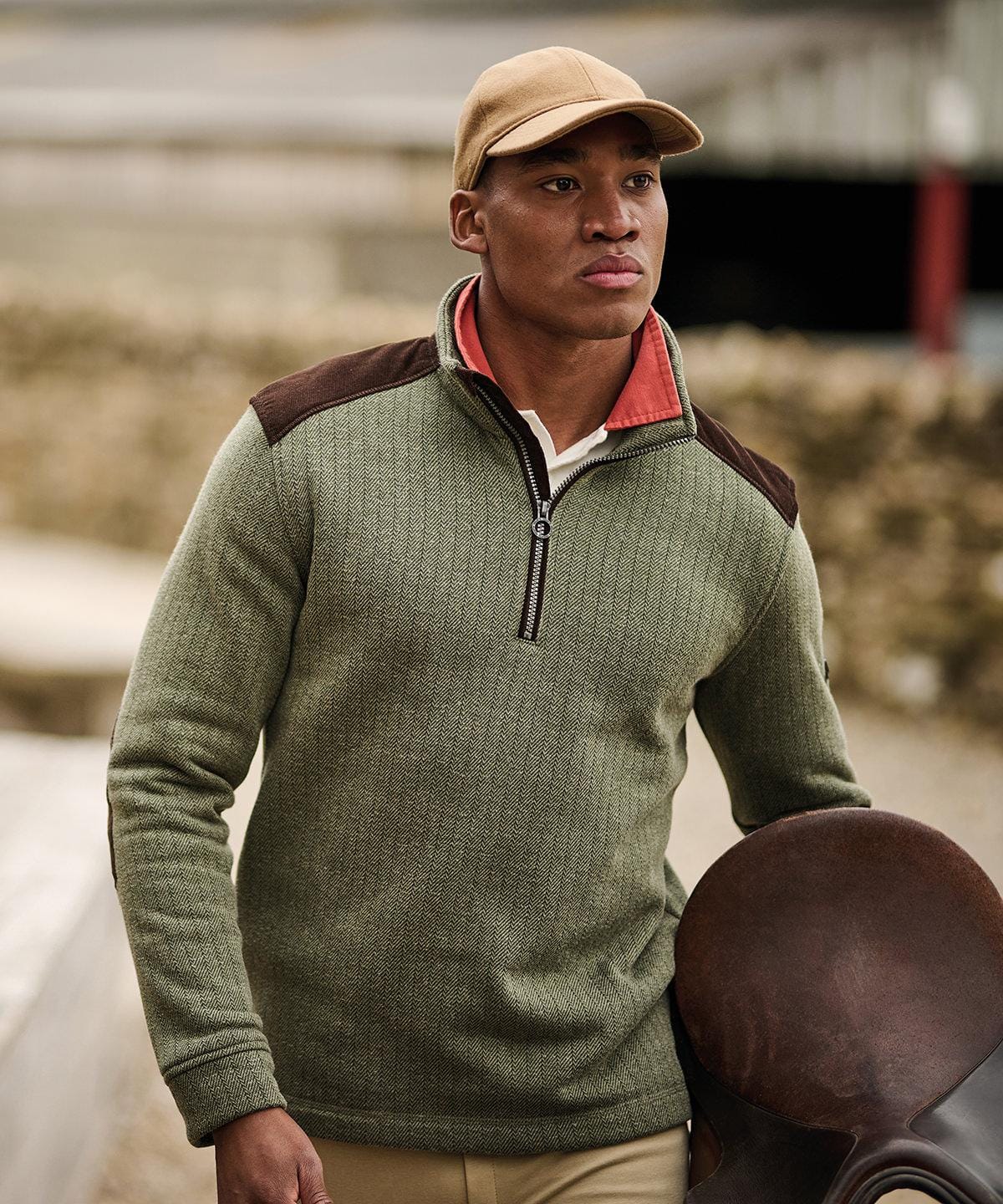 The Holbeck half-zip fleece from Regatta Professional. With strategic overlays and warming jacquard fleece fabric, it features a herringbone-effect to keep you cosy and on trend. The country vibe makes it perfect for working on country estate or farm, while the corduroy shoulder adds to the style and elbow overlay panels provide lasting wear.