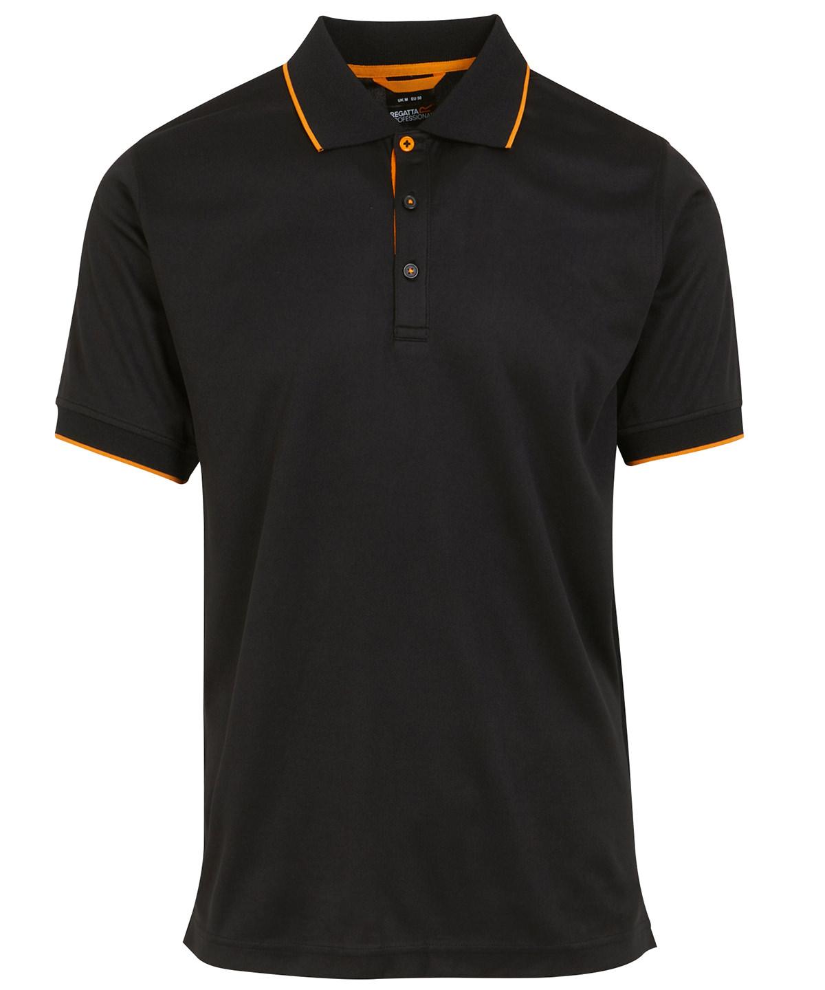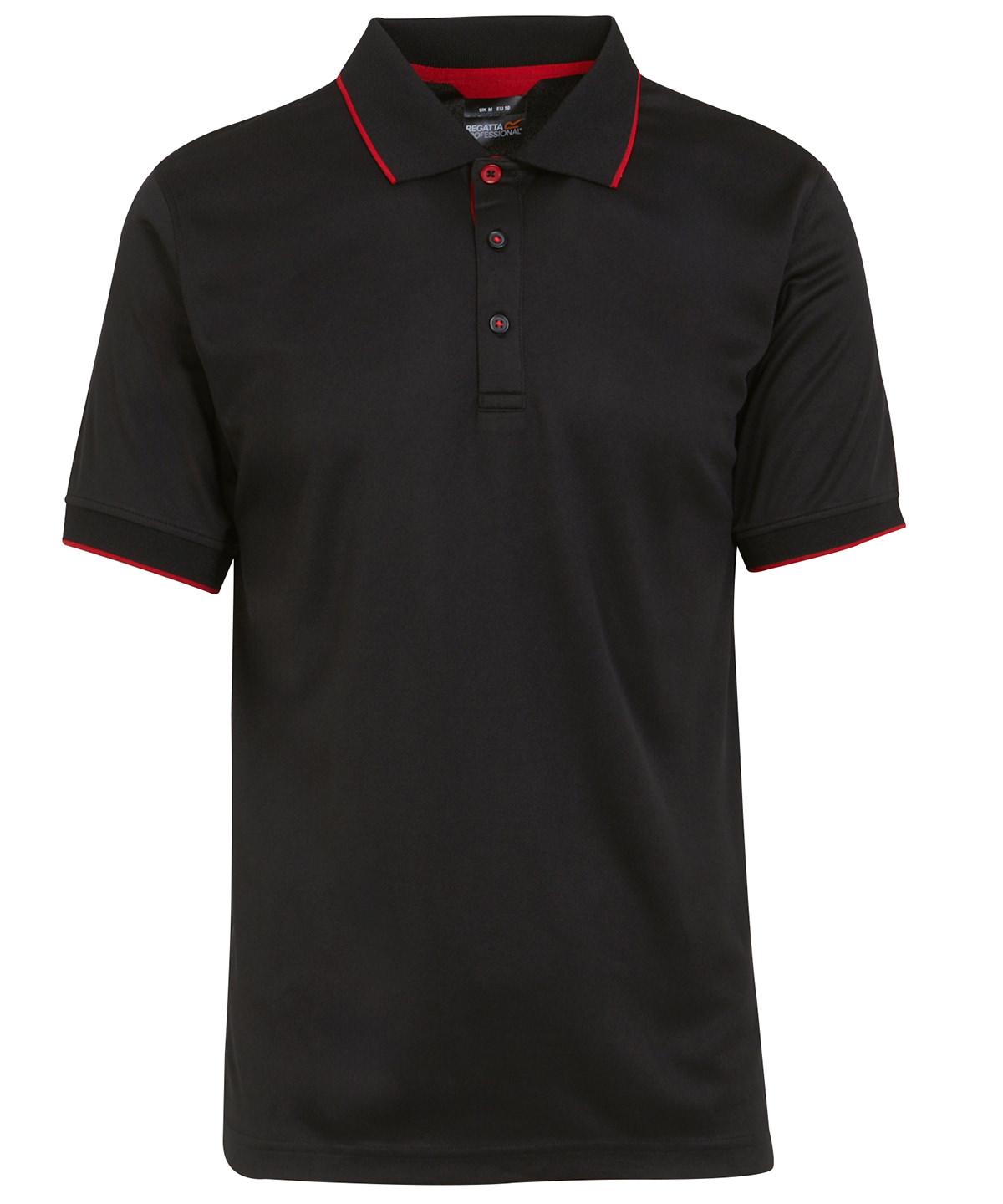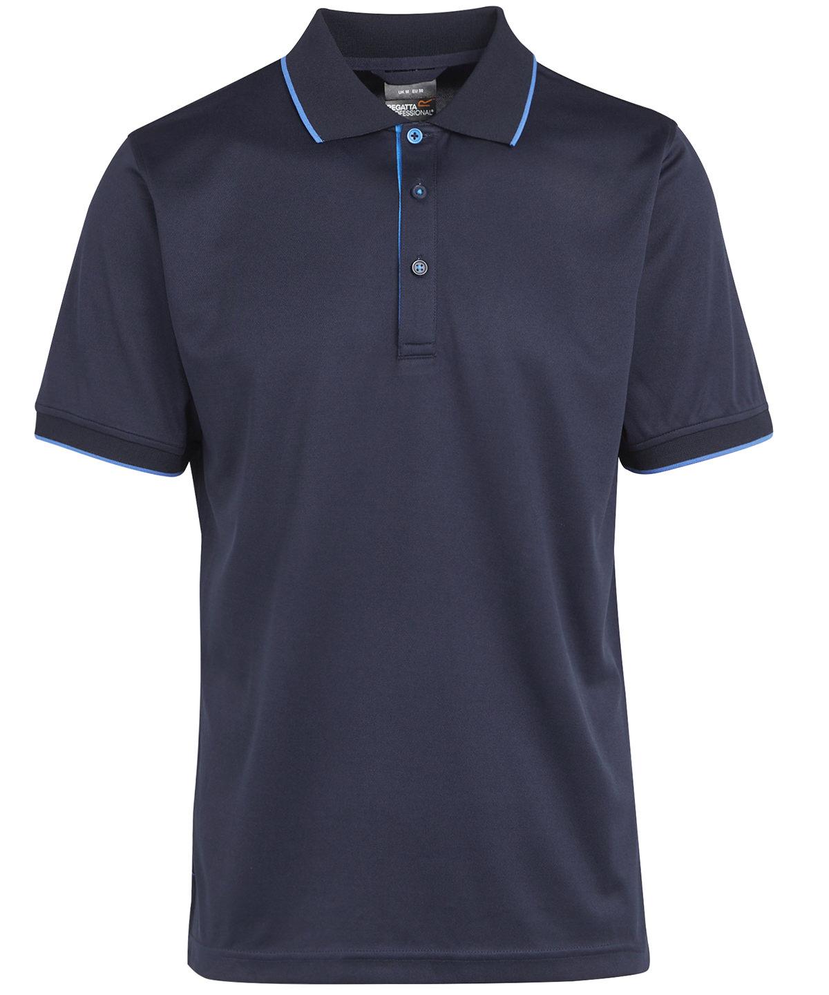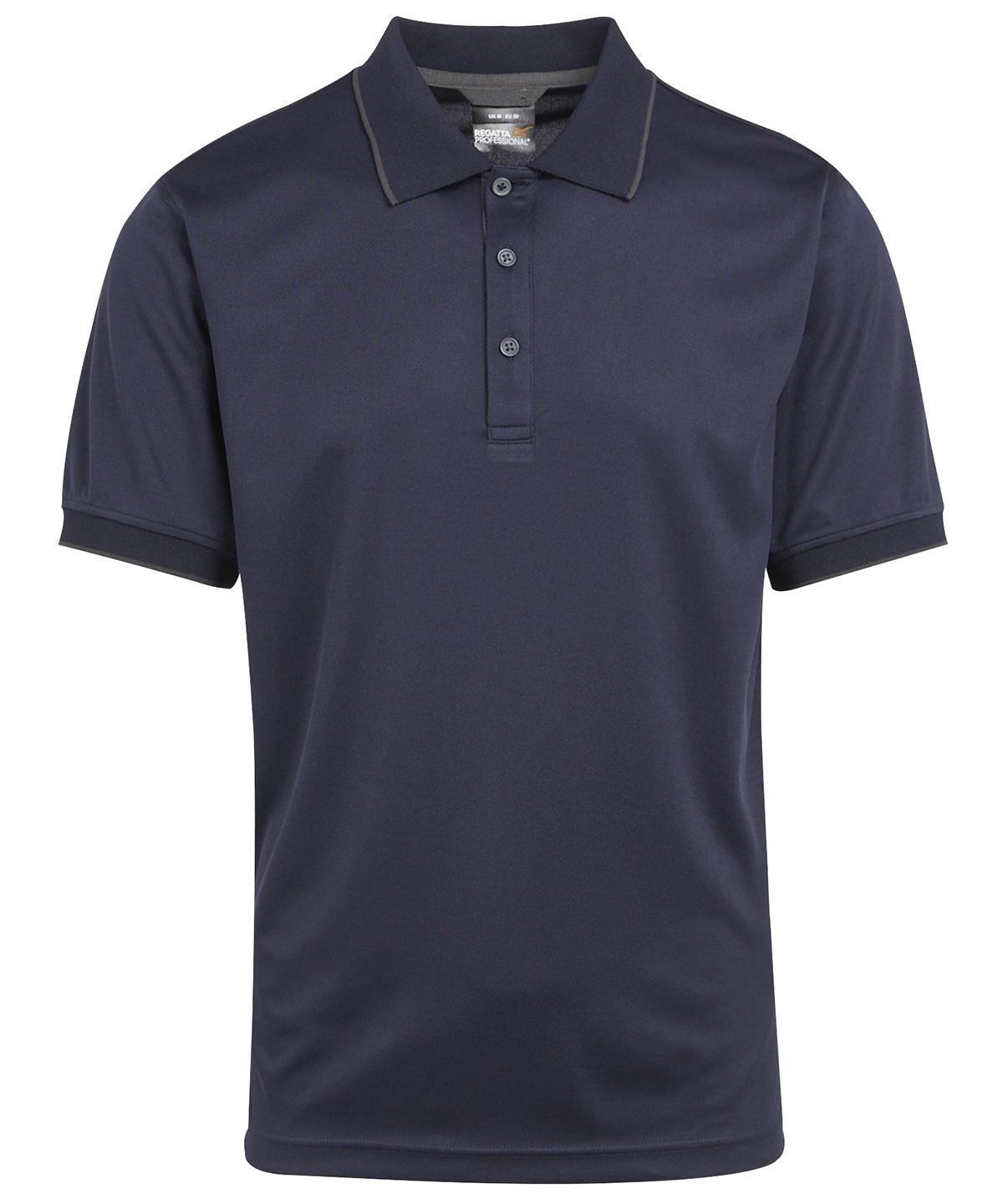 The Navigate short sleeve polo, from Regatta Professional, is a work wardrobe essential. This menâs polo shirt is made from textured polyester piqué fabric for lasting style. Good wicking performance and an antibacterial coating will keep you fresh, on the job, and itâs finished with a trendy contrast-colour tipped collar. REACH, GRS certified fabric and ETI compliant factory certified.