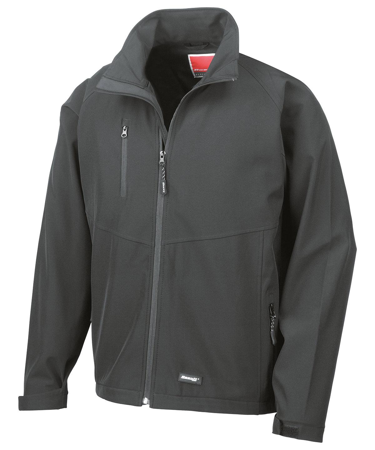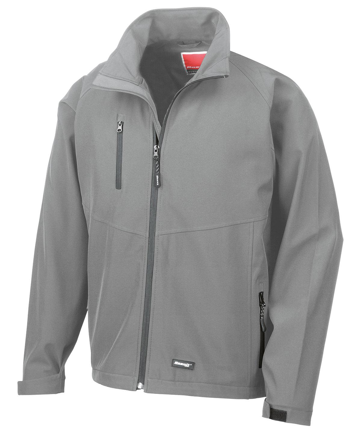 Takes embroidery and print well; Weight is right for a softshell jacket. Notes: 2 layer bonded soft stretch fabric sport comfort fit breathable showerproof. Digital print held up well after washing. Good value overall.