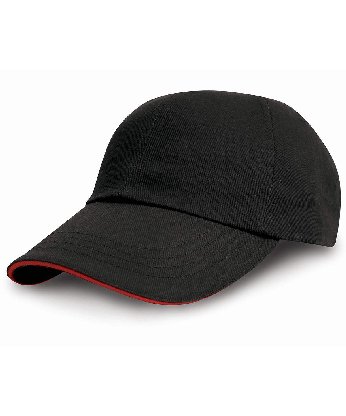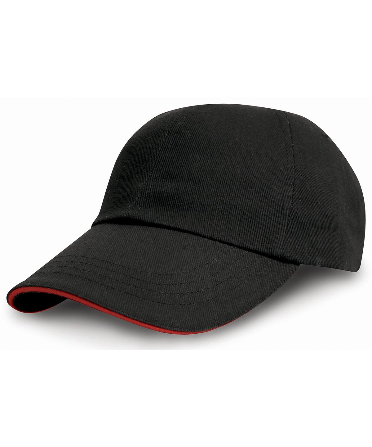 Heavy cotton, stylish cap contrasting colour sandwich peak, smart brass buckle size adjuster.