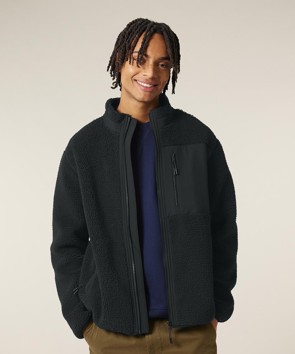 Premium Unisex Sherpa Jacket In 100 Recycled Polyester Relaxed Fit 450Gsm Fully Bonded Inside Fleece Layer With An Antipill Finish Contrast Softshell Inserts
