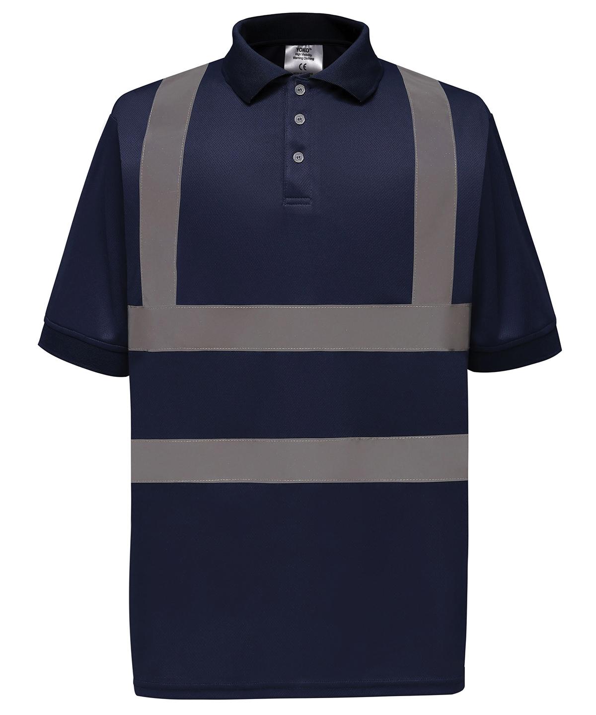 Short Sleeve Polo Shirt With 2 Reflective Band Braces Navy Contrast Collar And Cuffs Make Our Polo Shirt Stand Out 3Mâ Reflective Tapes Complements Our Polo Making It Look And Feel Great