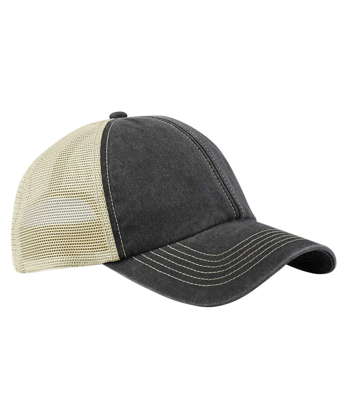 The 6 Panel Vintage Trucker Cap Is Edgy With Its Hint Of Distressed Retro Styling Made From Heavy Washed Cotton With Recycled Polyester Mesh Panels It Has A Relaxed Unstructured Crown And A Curved Peak For A Classic Look Contrast Stitching Adds Extra Detail While The Snapback Adjuster Ensures A Perfect Fit A Timeless Laid Back Piece With Vintage Appeal