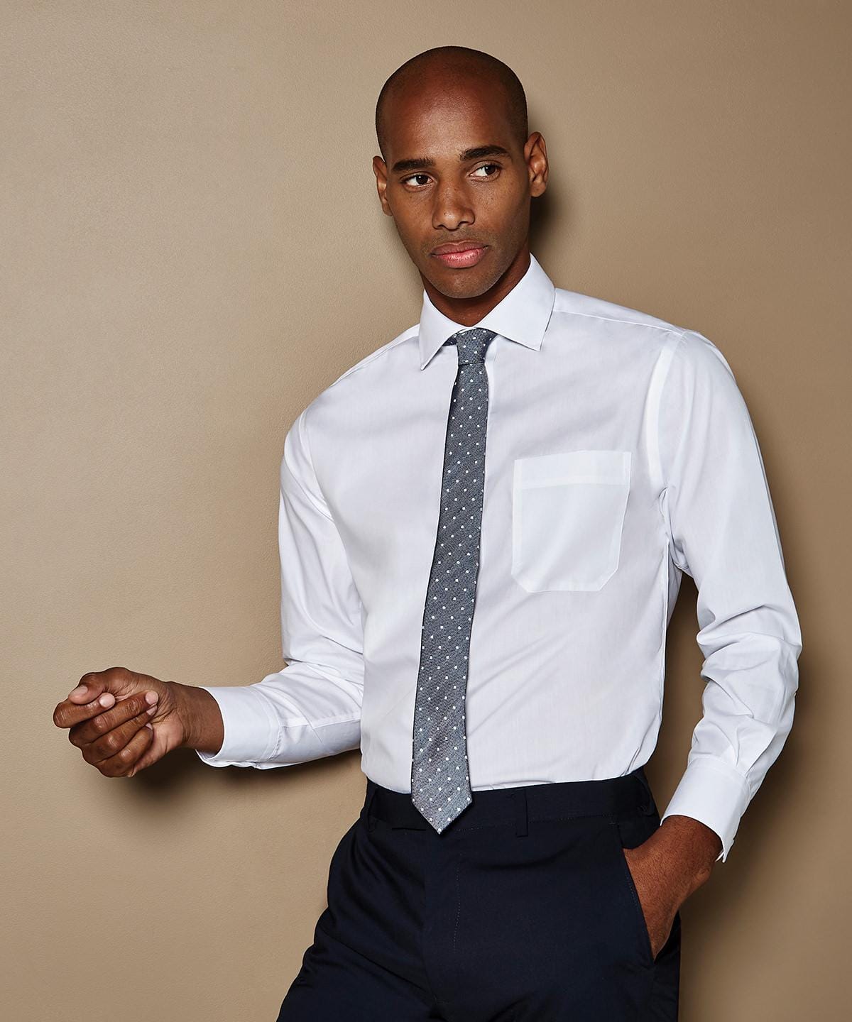 The perfect long sleeve shirt to wear in warmer weather, thanks to it’s 100% premium cotton construction. This breathable fabric not only keeps you cool and comfortable but also features non-iron properties.