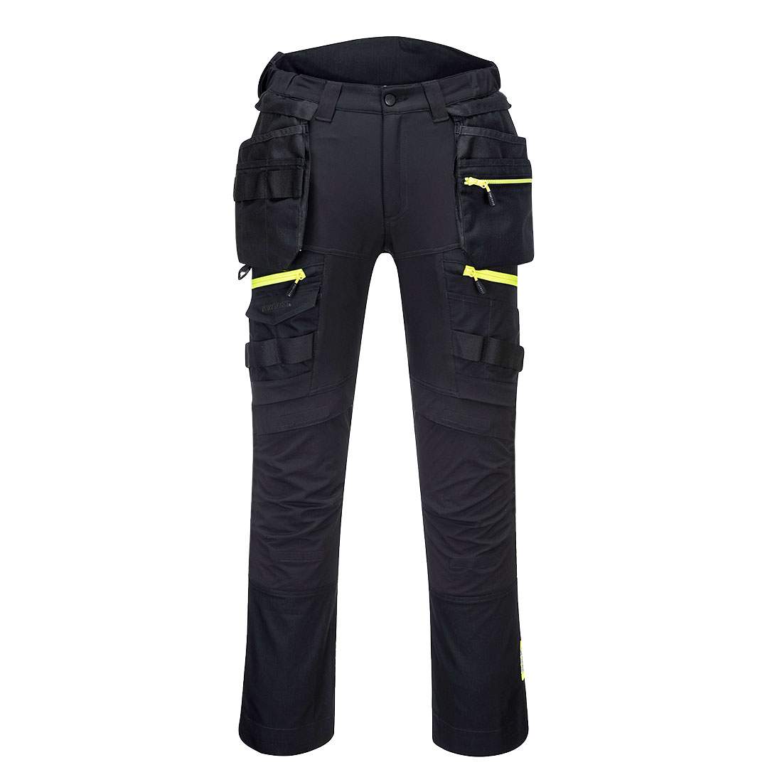 The DX4 Holster Trouser is ergonomically designed and uses the targeted placement of dynamic 4X stretch fabrics to give maximum range of movement when working. The trouser features a high-rise back waistband with side elastication, ensuring protection in all working positions. Pre-bent top loading adjustable knee pad pockets, generously sized front pockets and multi-functional zip thigh pockets offers secure storage of phone, pens and tools. Triple stitching throughout for maximum durability.