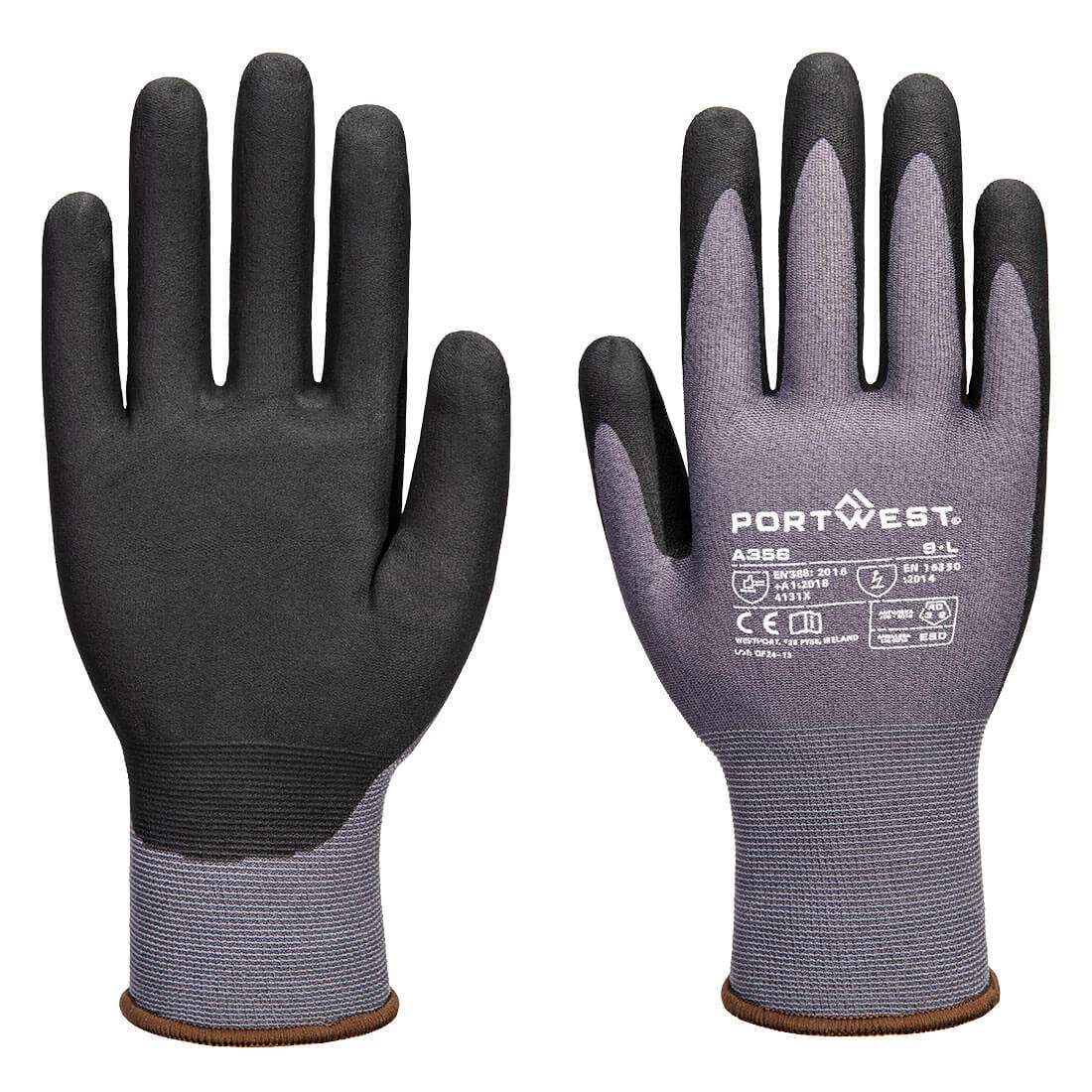 The A356 delivers superior ESD protection, durability, and precision. Made with Nylon, Elastane, Carbon Fibre, and a 15-gauge ultra-thin Nitrile Micro Foam coating, these breathable gloves offer excellent grip, tactile sensitivity, and comfort. Reinforced for durability, they are ideal for electronics and sensitive environments.