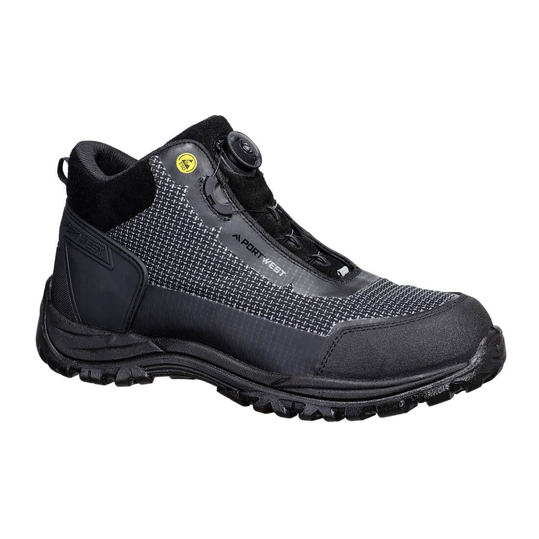 The height of this ankle boot ensures the ankle is protected and supported. It is constructed with an innovative wire lace system for faster lacing and quick release. The upper comprises of a heavy duty cut resistant – level A – textile, combined with a high abrasion resistant toe bumper and a supportive TPU back part.