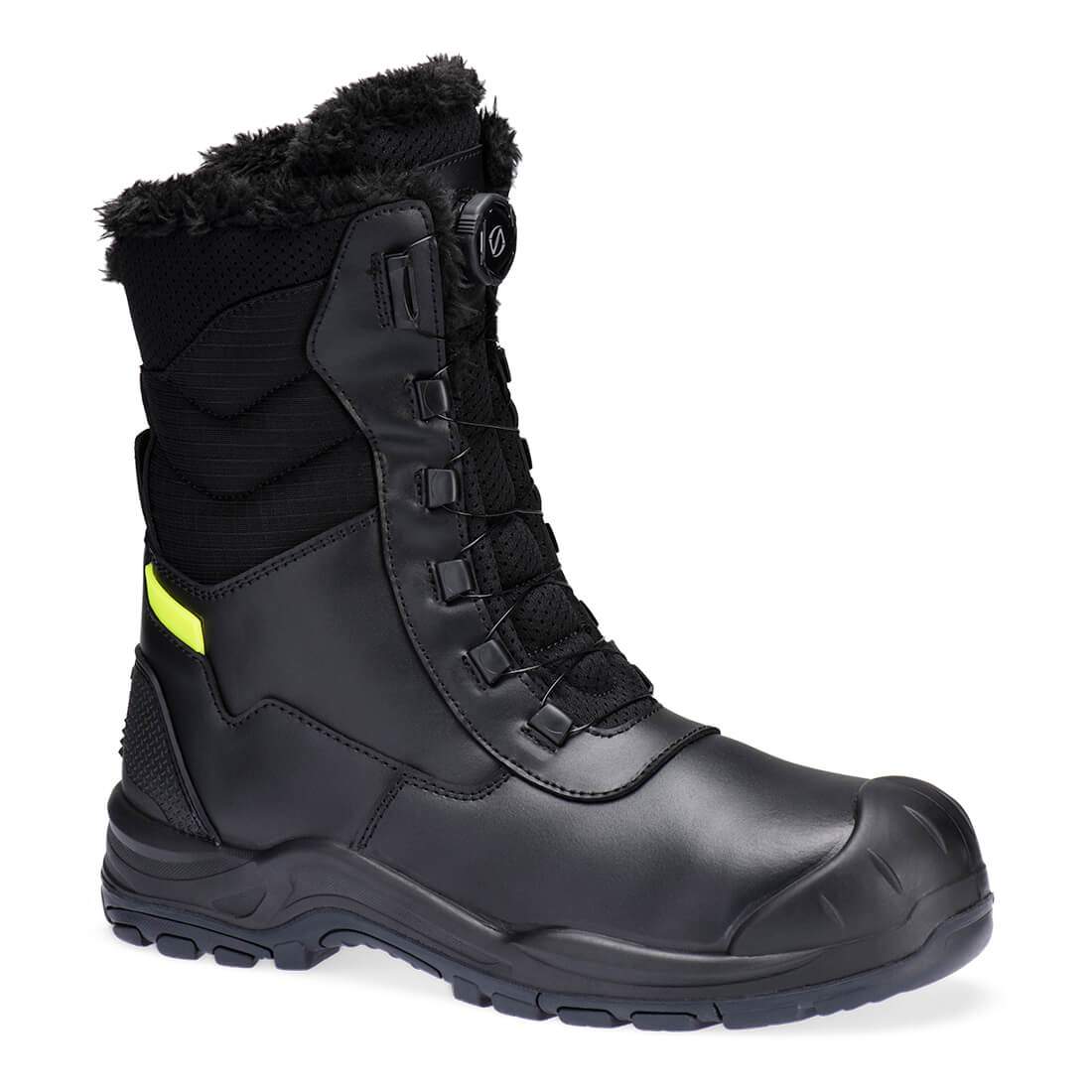 This innovative high leg boot is an ideal choice for the harshest winters and cold environments. Features includes a warm faux fur lining rated down to -30ºC cold and a wire lace system which can be tightened or loosened with a single gloved hand. The leg padding, robust TPU heel counter and scuffcap give extra protection and stability. A deep cleated, nitrile rubber outsole provides outstanding grip.