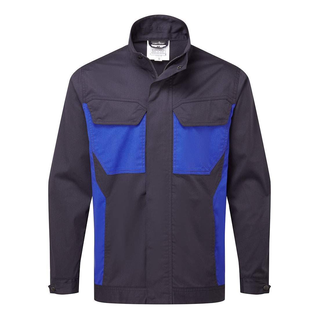 This contemporary industrial wash work jacket not only looks great but also fits perfectly. Made from highly durable polycotton canvas fabric, it endures industrial laundering up to 75°C while providing superior comfort. Its innovative design features stretch fabric for improved mobility, pre-bent sleeves, a longer back length, and adjustable cuffs. With multiple pockets for ample storage, this jacket is built for durability and practicality in demanding work environments.
