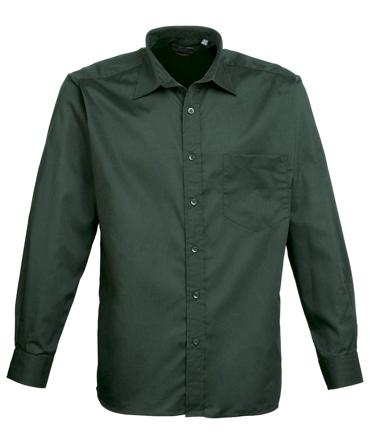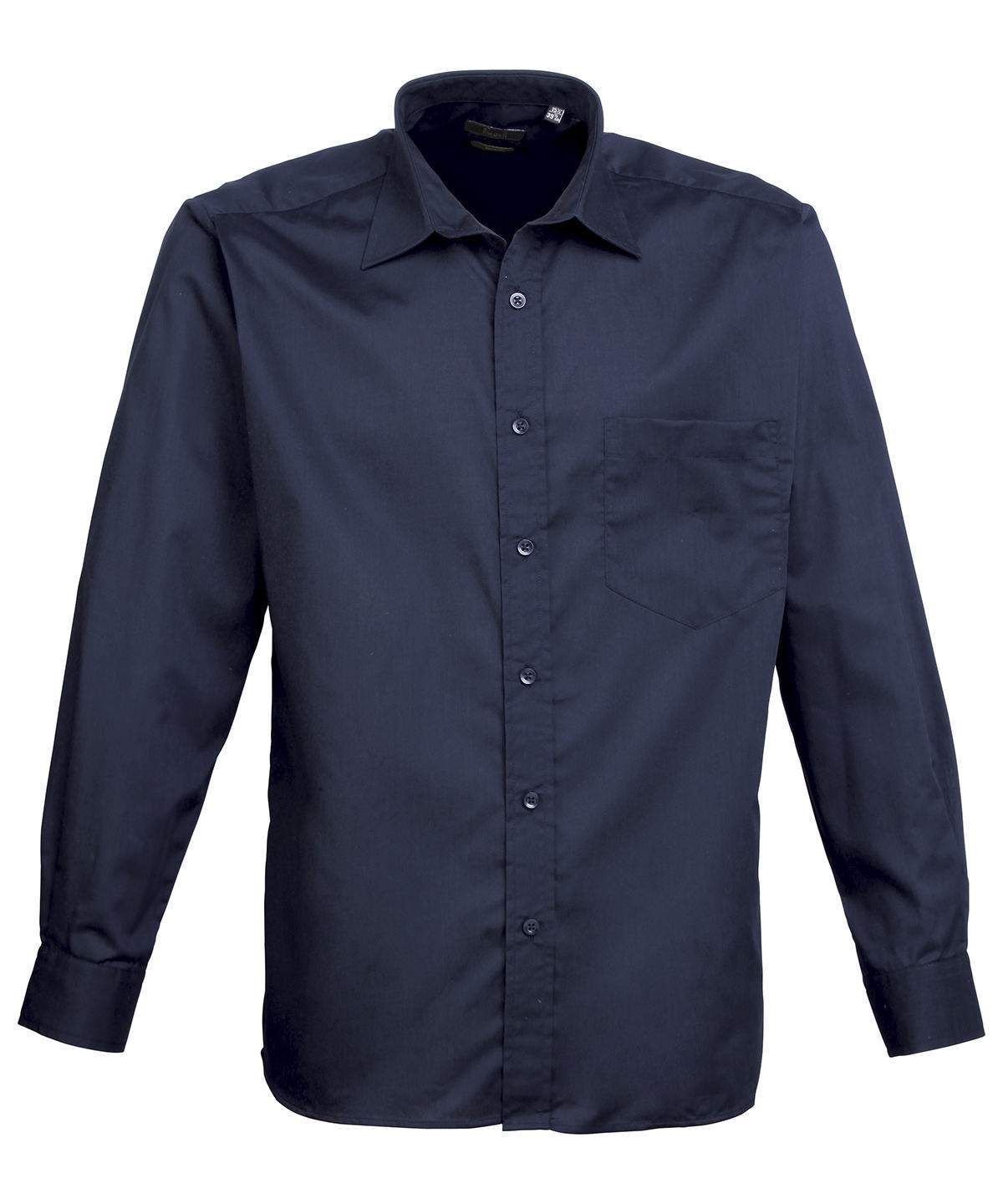 A Men S Long Sleeved Classic Fit Poplin Shirt Available In 27 Colours From The Premier Colours Collection This Classic Work Shirt Has A Stiffened Formal Cut Collar Which Accommodates A Ties Perfectly The Left Breast Pocket And Self Fabric Buttons Down The Placket And Cuffs Makes For A Smart And Stylish Everyday Shirt Which Carries Premier S Easy Care Label